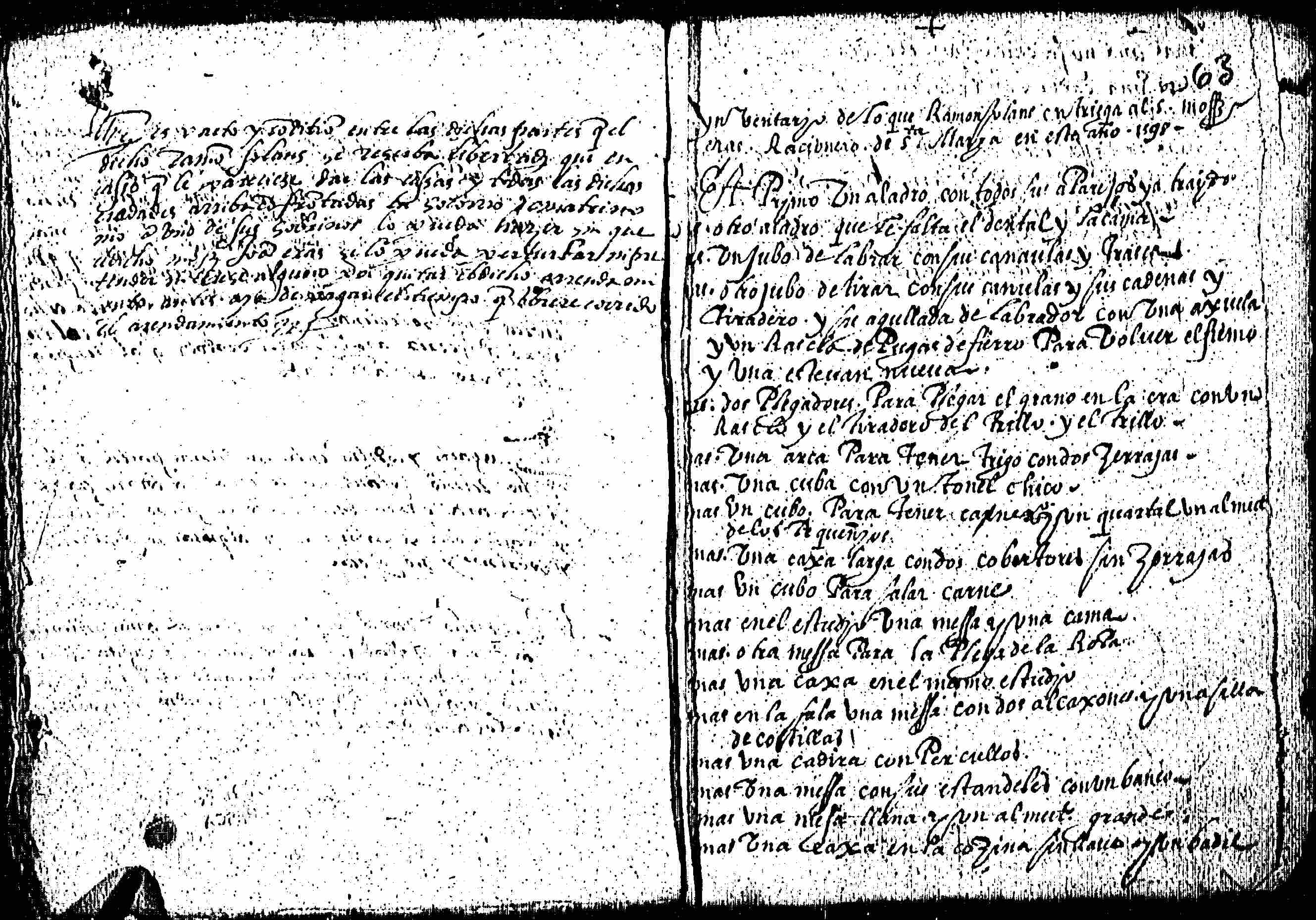 | Contenido: Inventario de lo que Ramón Solans entrega a mosén Eras. Bienes muebles de casa y de labranza. La capitulación figura en CLERO.\r\nFolio 63r-v |