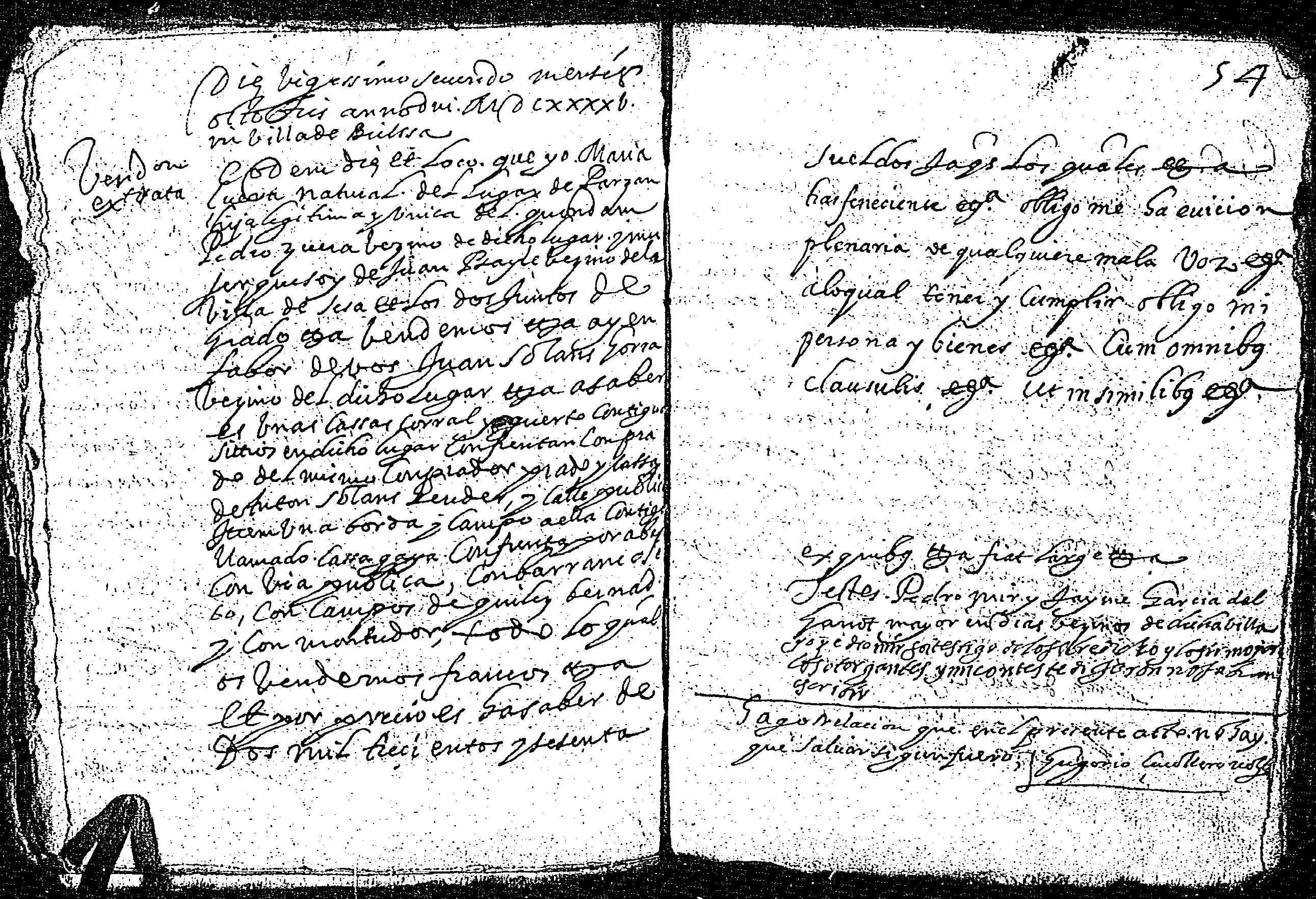 | Contenido: María Zuera, natural del lugar de Parzan, hija unica del quondam Pedro Zuera olim vecino de ese lugar, y como esposa de Juan Bayle, vecino de la villa de Sesa, vende a favor de Juan Solans Gorra vecino de Parzan, unas casas, corral y huerto y una borda, todo en dicho término, por precio de 2360 s. jaq. |