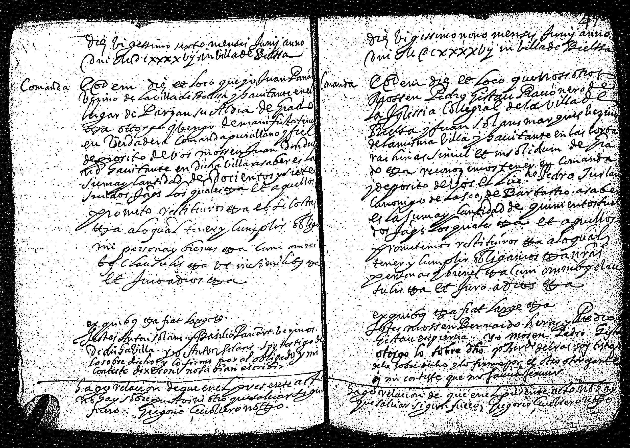 | Contenido: Juan Pañart, vecino de la villa de Bielsa y habitante en Parzan su aldea otorga tener comanda a favor de mss, Juan Dondueño, habitante en dicha villa por la suma de 207 s. jaq. |