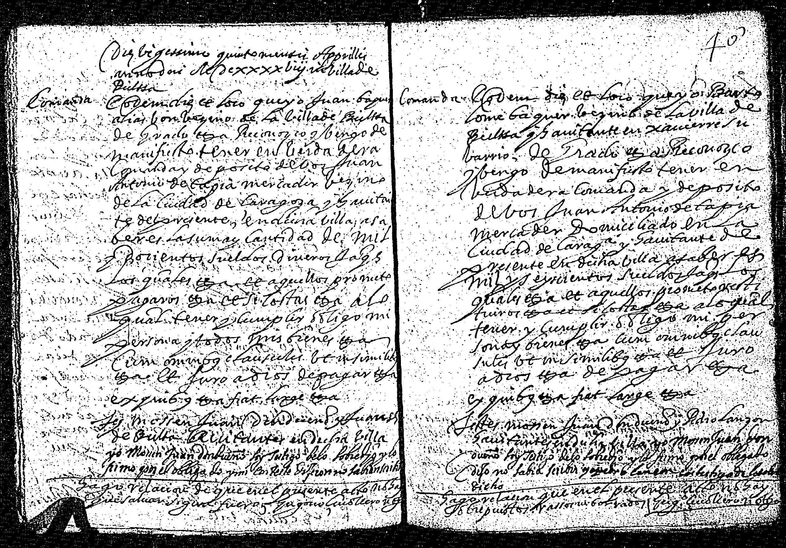 | Contenido: Juan Bager, alias Bon, vecino de la villa de Bielsa, reconoce tener comanda a favor de Juan Antonio de Tapia, mercader, vecino de la ciudad de Zaragoza por la suma de 1200 s. jaq. |