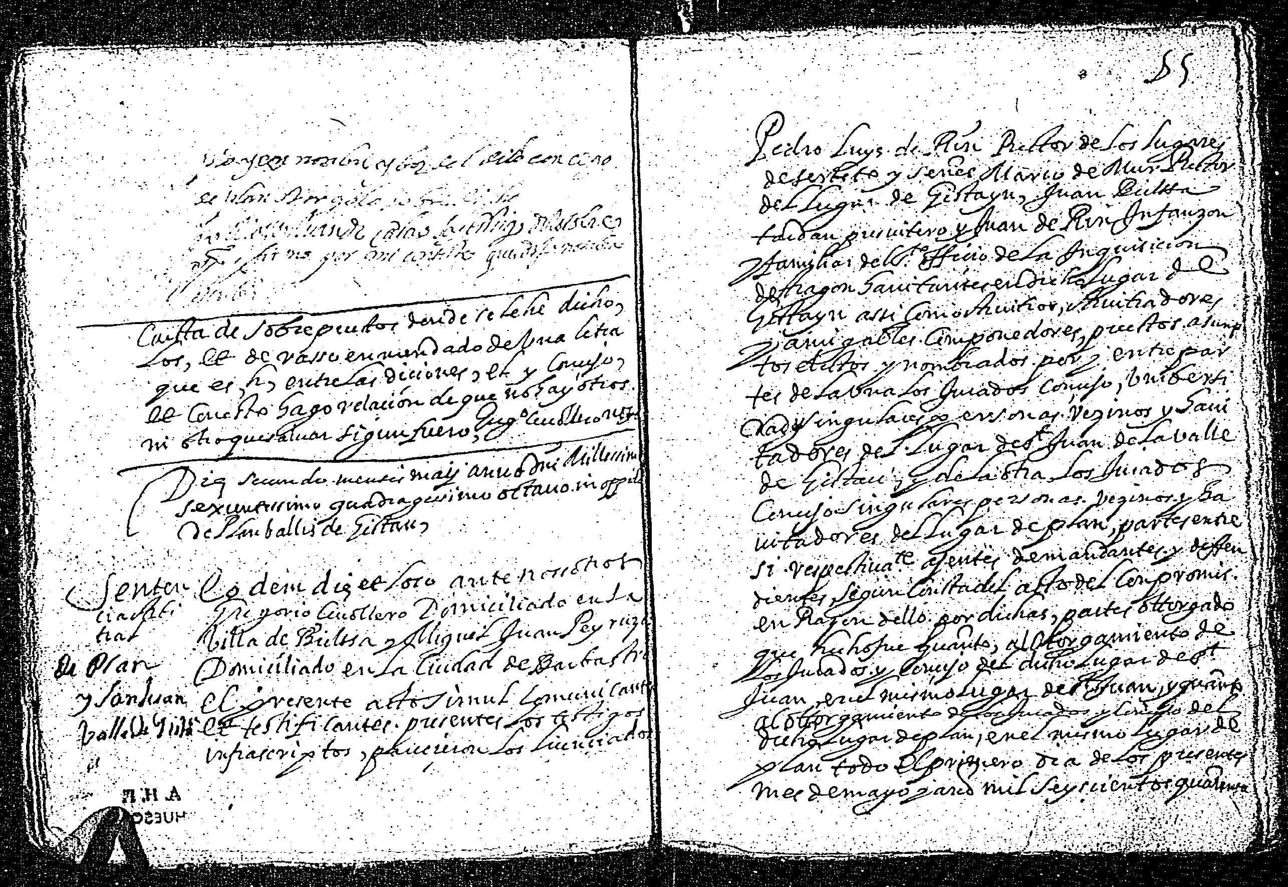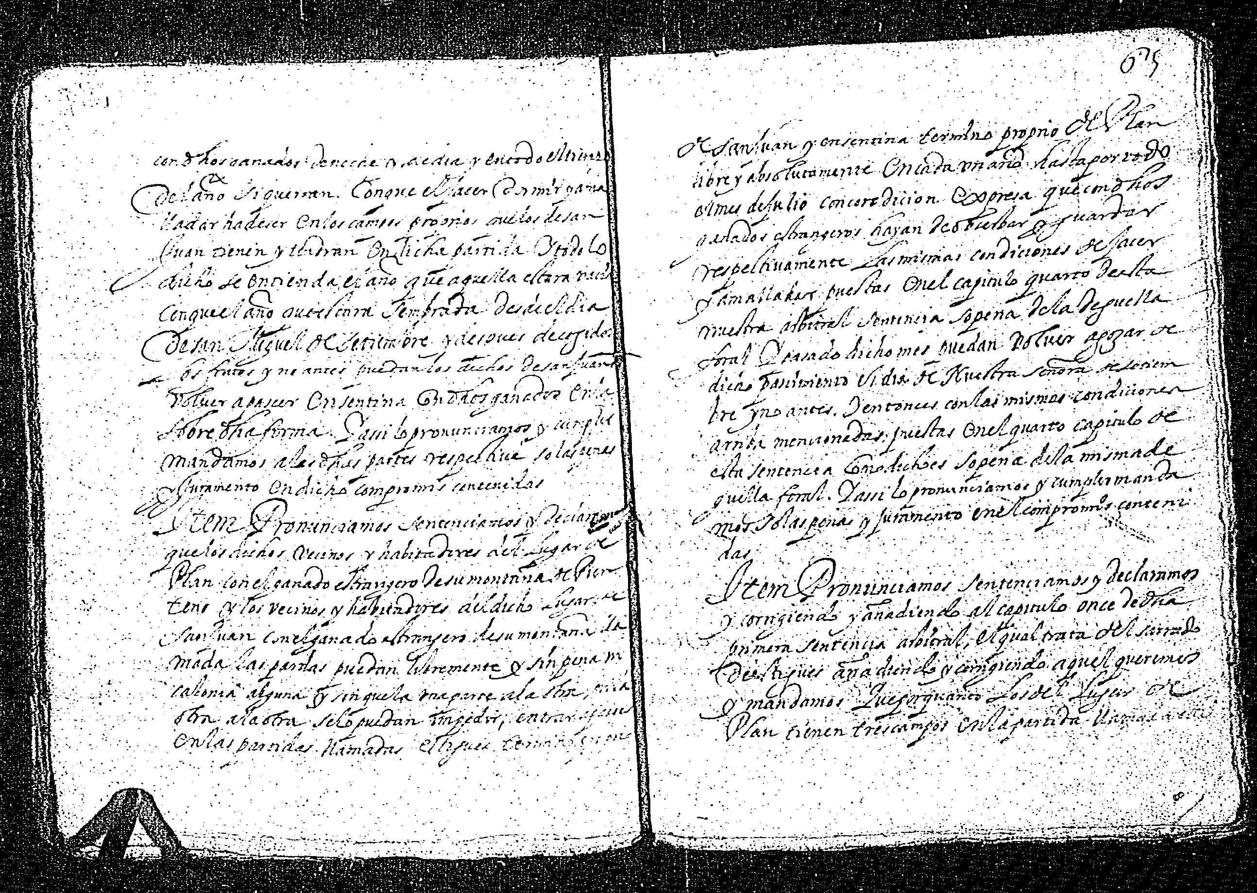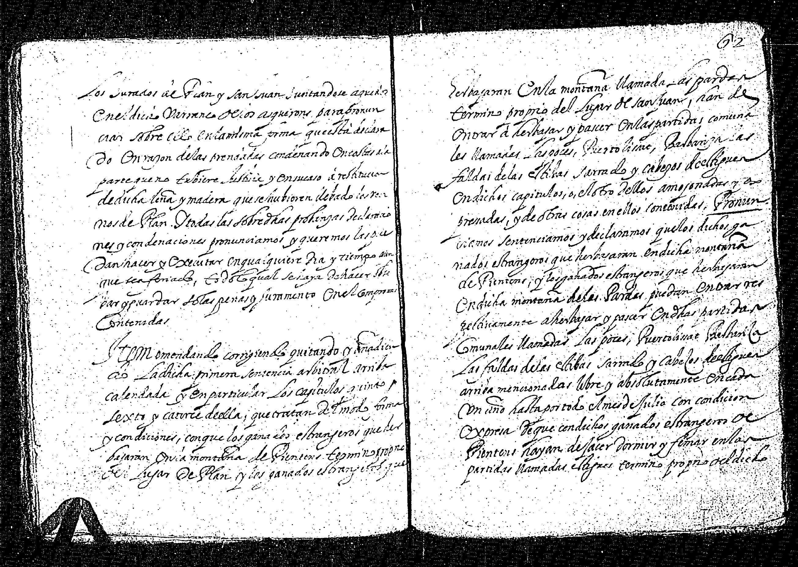 | Contenido: Los licenciados mss. Pedro de Luys de Rin, rector de los lugares de Serveto y Sort, mss. Marco de Mur, rector de Gistayn, mss. Juan de Bielsa, Tardan, presbítero y Juan Riu, infanzón y familiar del Sto. Oficio, domiciliado en Gistayn como árbitros dan definitiva sentencia sobre dichas diferencias habidas entre los lugares de San Juan y Plan de la Val de de Gistau sobre los amojonamientos de términos comunes y propios entreambos lugares, arbitrando el reparto de pastos y leñas y anulando las dos sentencias anteriores dadas la primera en San Juan a 16 días del mes de junio de 1568 y la segunda en Plan a 30 de septiembre de 1569, testificadas por Miguel Morillo, notario de la valle de Puértolas, ratificadas por la corte del Justicia de Aragón. |