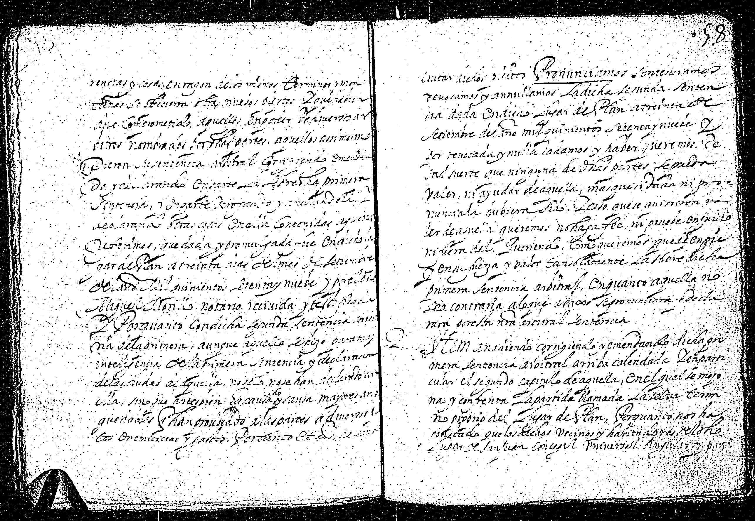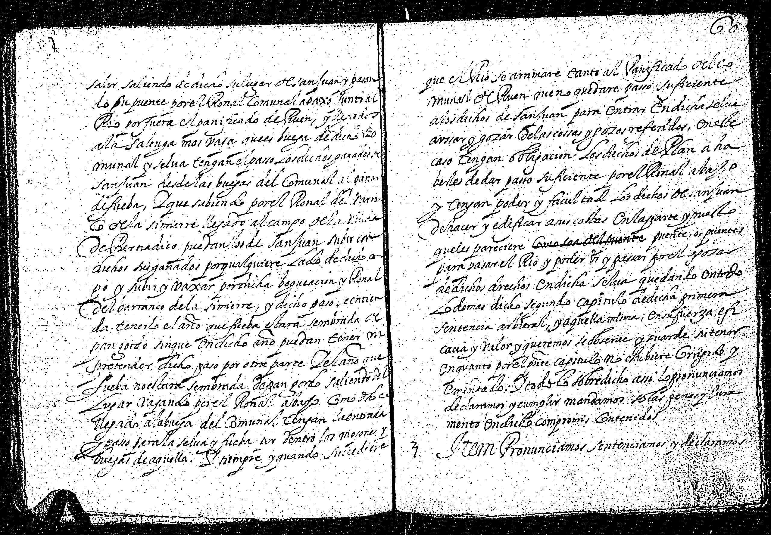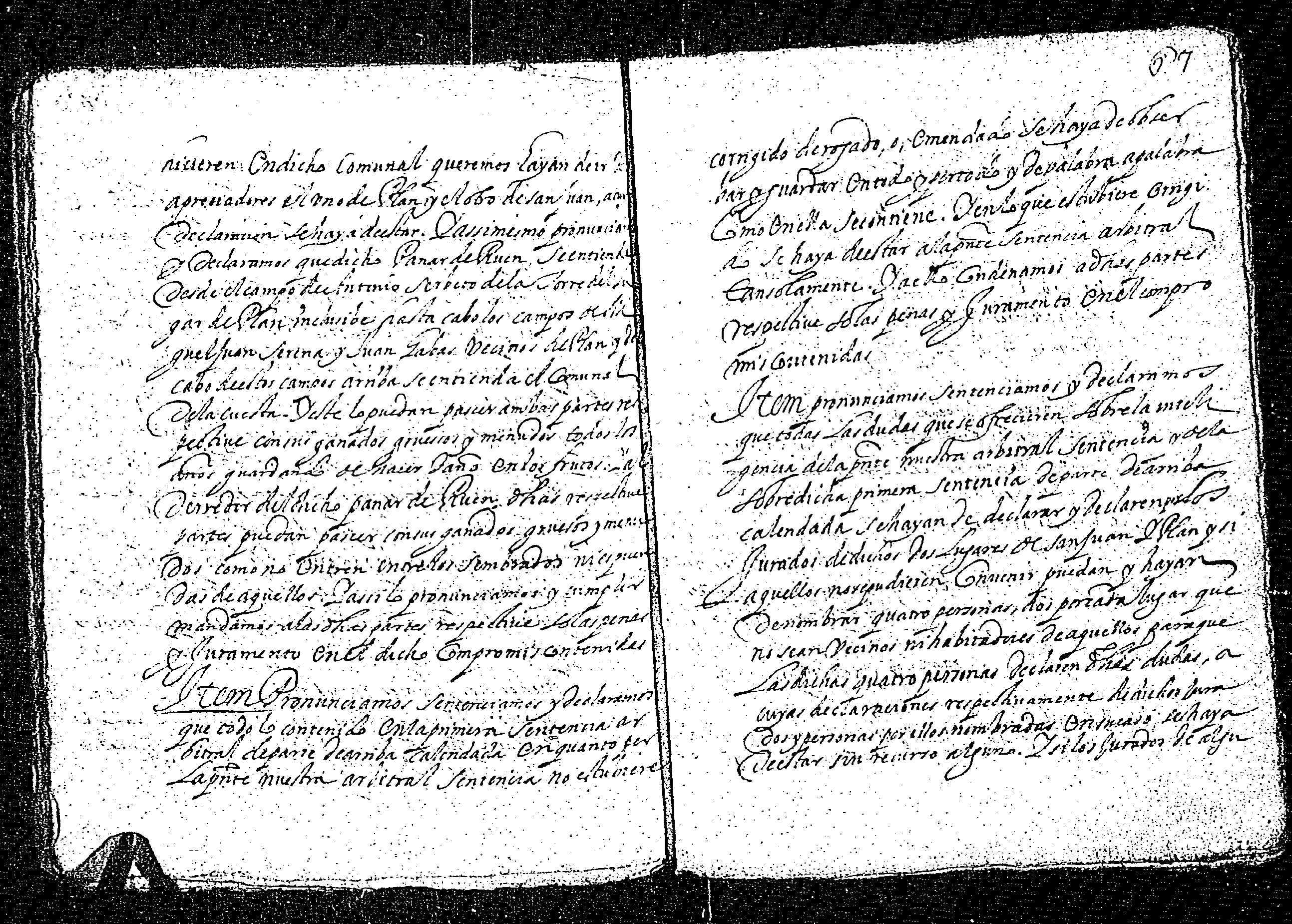 | Contenido: Los licenciados mss. Pedro de Luys de Rin, rector de los lugares de Serveto y Sort, mss. Marco de Mur, rector de Gistayn, mss. Juan de Bielsa, Tardan, presbítero y Juan Riu, infanzón y familiar del Sto. Oficio, domiciliado en Gistayn como árbitros dan definitiva sentencia sobre dichas diferencias habidas entre los lugares de San Juan y Plan de la Val de de Gistau sobre los amojonamientos de términos comunes y propios entreambos lugares, arbitrando el reparto de pastos y leñas y anulando las dos sentencias anteriores dadas la primera en San Juan a 16 días del mes de junio de 1568 y la segunda en Plan a 30 de septiembre de 1569, testificadas por Miguel Morillo, notario de la valle de Puértolas, ratificadas por la corte del Justicia de Aragón. |