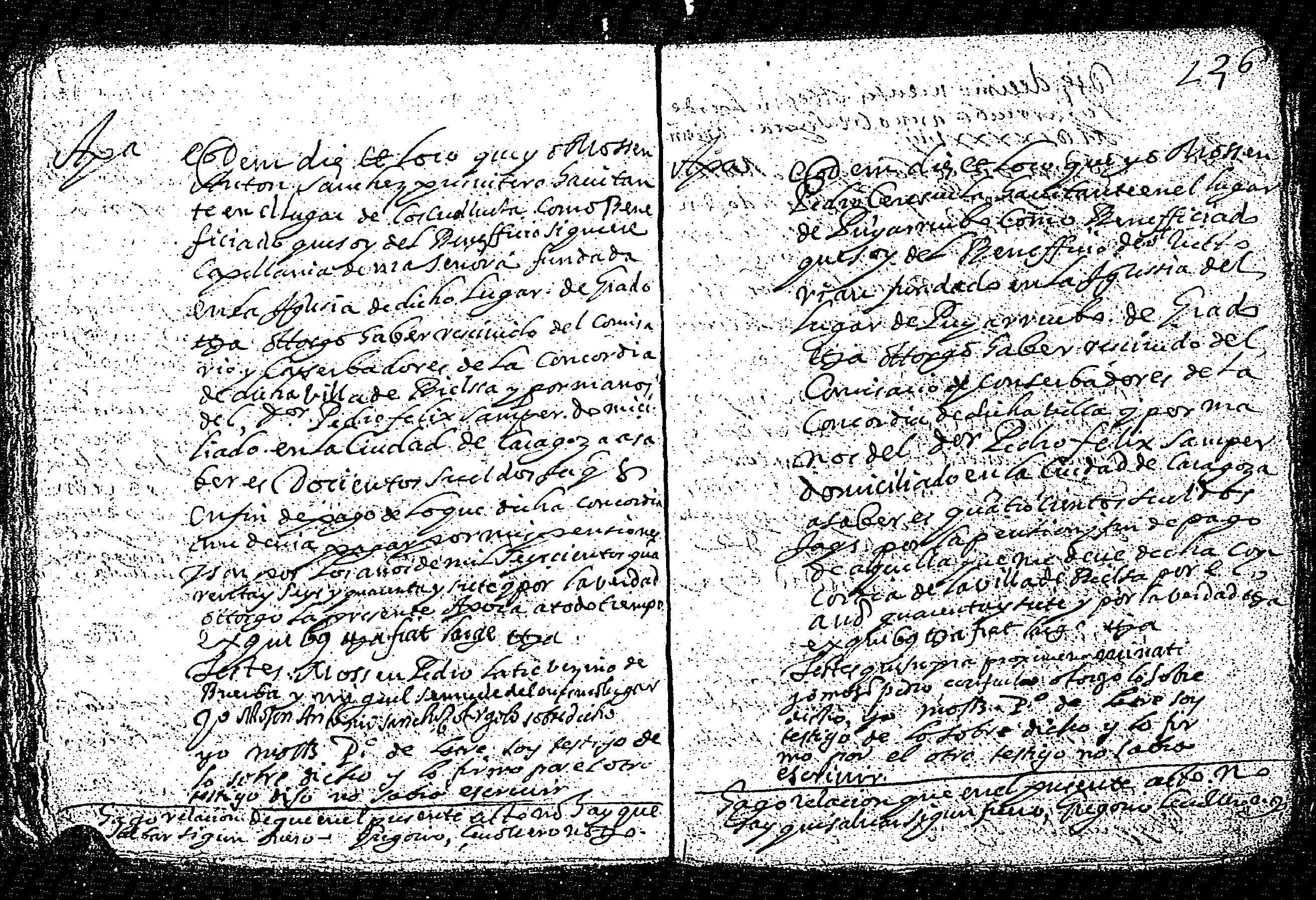 | Contenido: Mss. Pedro Ceresuela, presbítero, habitante en Puyarruebo, como beneficiado delbeneficio fundado en la iglesia de dicho lugar, otorga haber recibido del comisario y conservadores de la concordia de Bielsa por manos de Pedro Felix Samper 400 s. jaq. en fin de pago de las pensiones de 1647. |