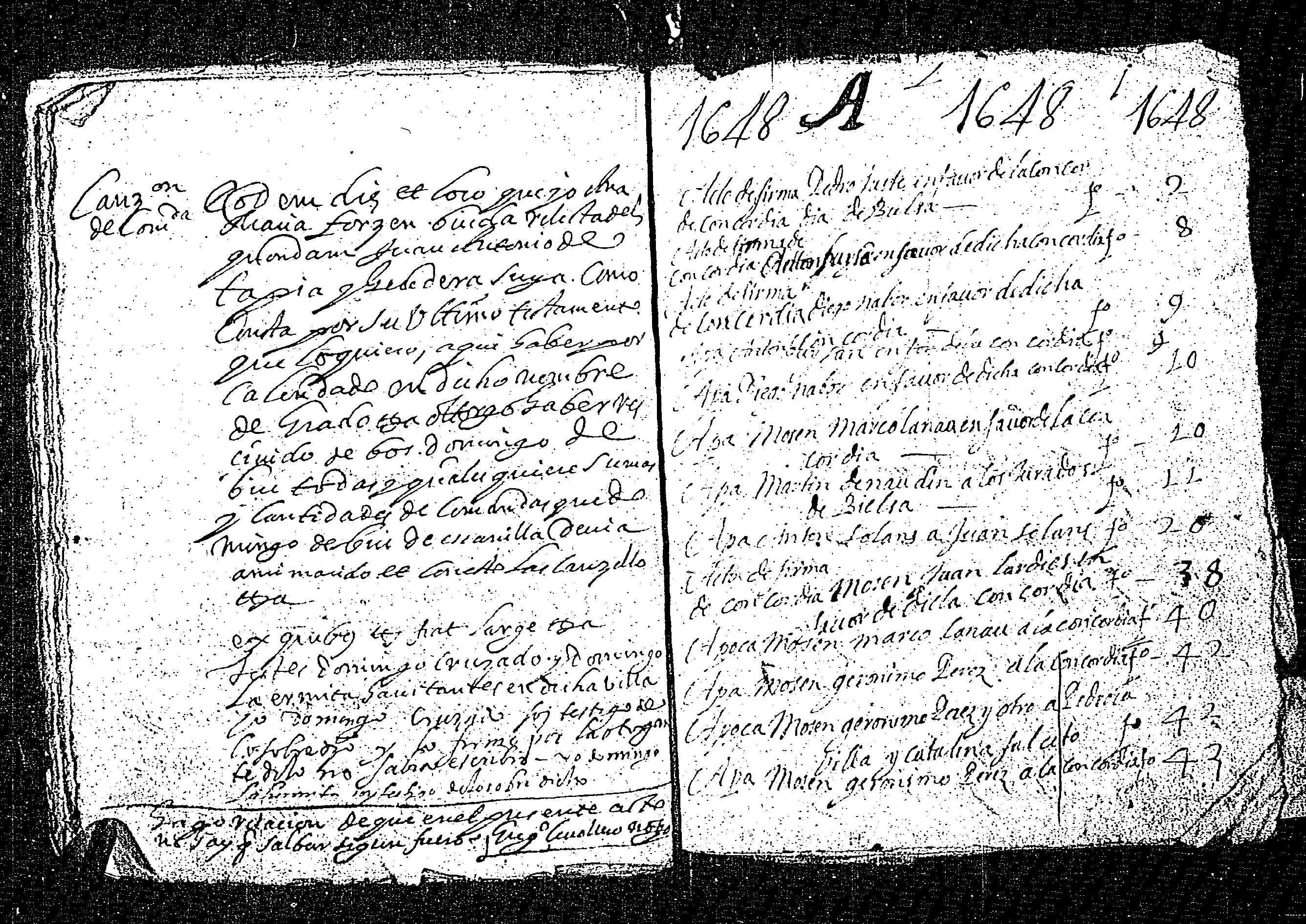 | Contenido: María Forzen, viuda de Juan Antonio de Tapia, mercader, olim domiciliado en Zaragoza, reconoce haber recibido de Domingo de Biu de Escanilla todas las sumas que le debía mediante comanda a dicho Juan Antonio de Tapia. |