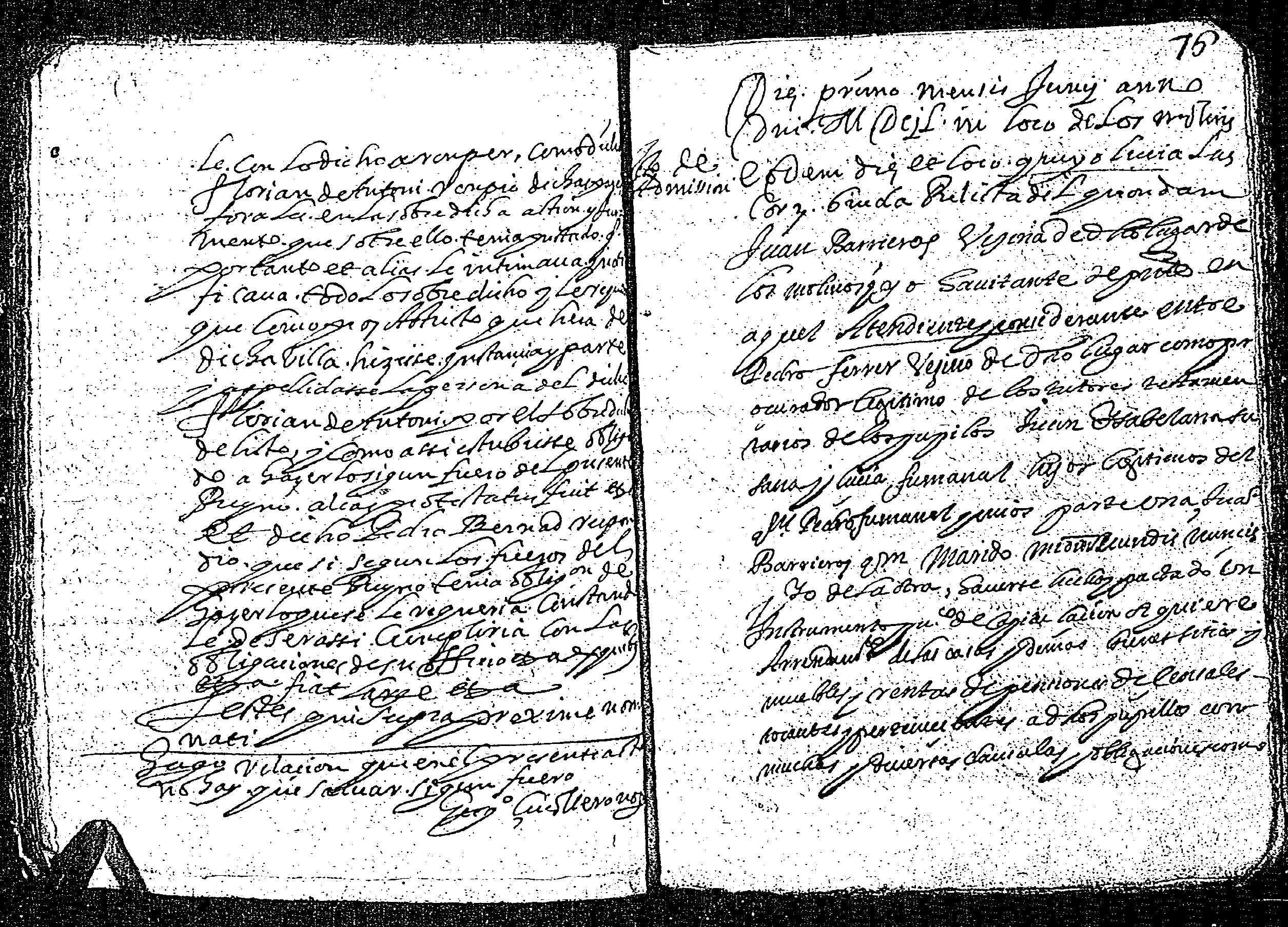 | Contenido: Ante la presencia de Pedro Berna de la Honor, procurador astricto de la villa de Bielsa, compareció Pedro Geras, vecino de la villa, atendiente que en días atrás hubiese fdado paces forales con Florián de Antoni, vecino de la villa, quien en el presente día se las ha quebrado, con una riña por lo mismo, dándole muchos imbriones en el coro de la iglesia de la villa, porfiendo a estar en el puesto que estaba Pedro Heras, provocandole. |