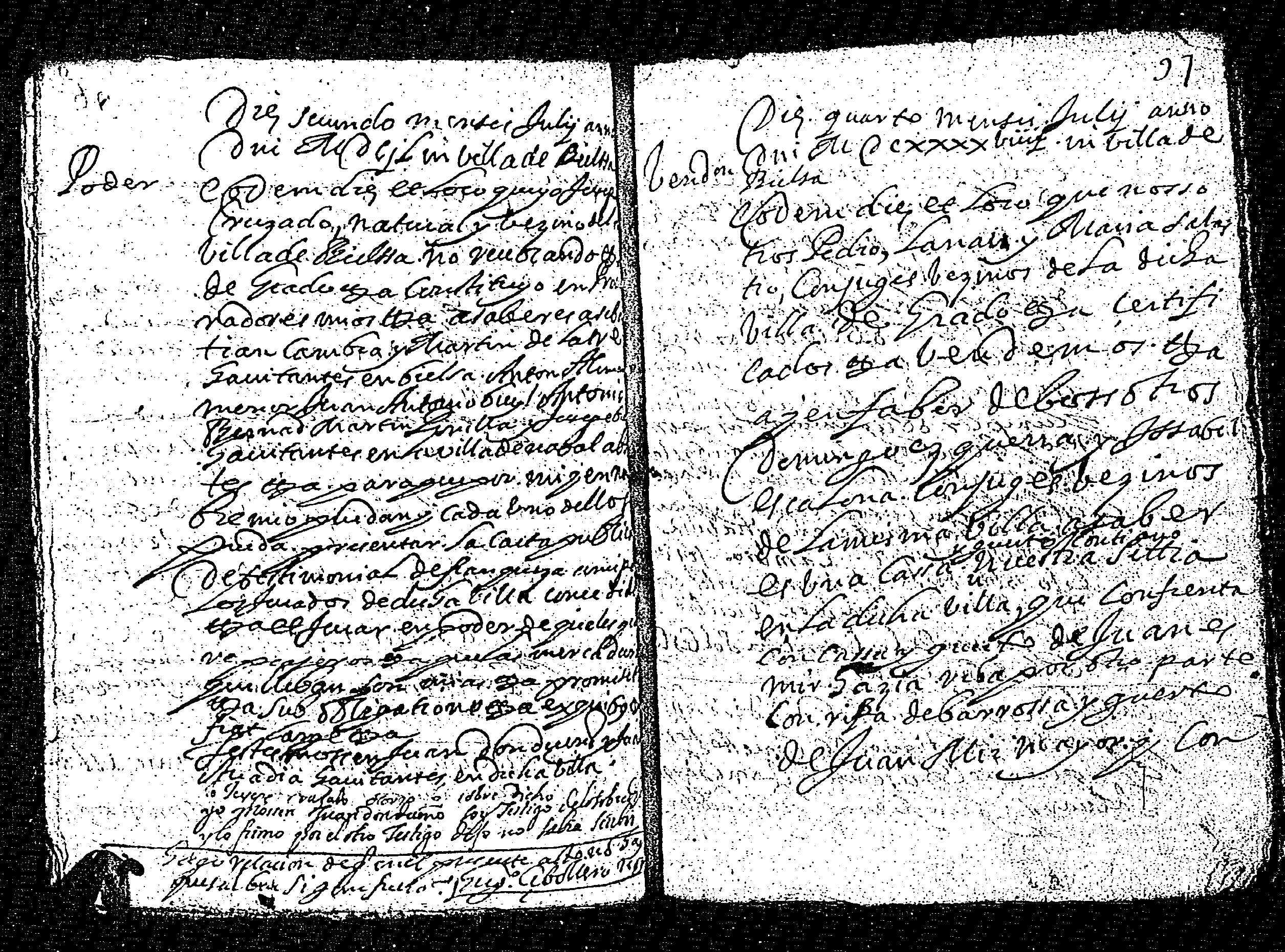 | Contenido: Jusepe Cruzado, natural y vecino de Bielsa, nombra sus procuradores a Martin de Latre y Sebastián Cambra, habitantes en la villa, Anton Alm[lac] menor, Juan Antonio Buyl, Antonio Bernad, Marton Pinilla y Jusepe [lac] habitantes en la villa de Naval para que puedan presentar su carta de franqueza. |