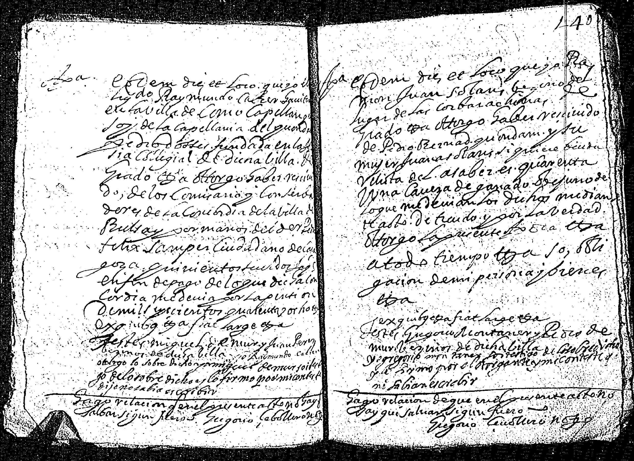| Contenido: Mss. Raymundo Cabrer, habitante en Bielsa, como capellán de la capellanía del qd. Pedro de Osses, fundada en la colegial de dicha villa, otorga haber recibido de los conservadores de la concordia de Bielsa por manos de Pedro Felix Samper, la suma de 500 s. jaq. por fin de pago de su pensión de 1648. |