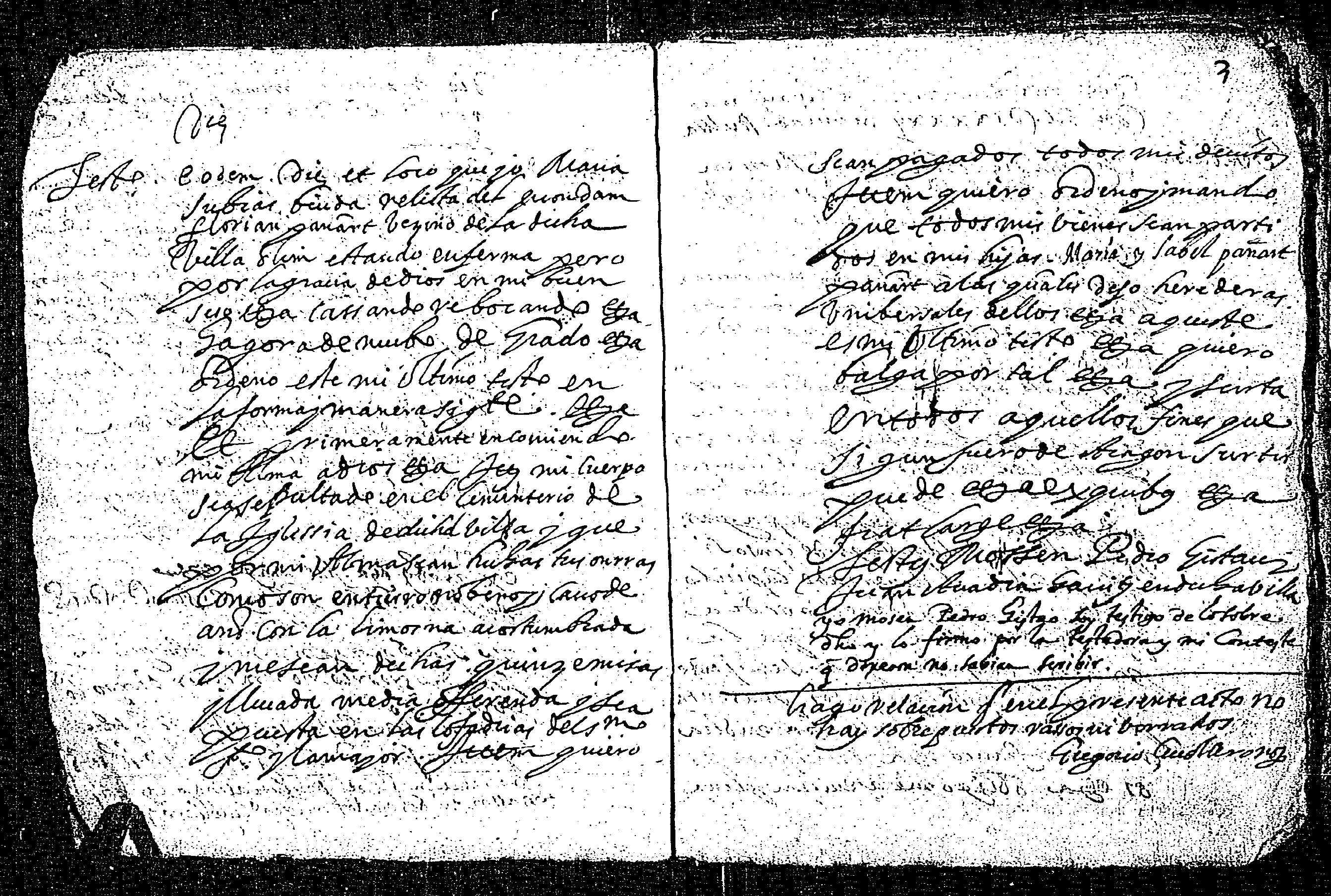 | Contenido: Testamento otorgado por María Subias, viuda de Floriant Pañart, vecino de la villa de Bielsa. |
