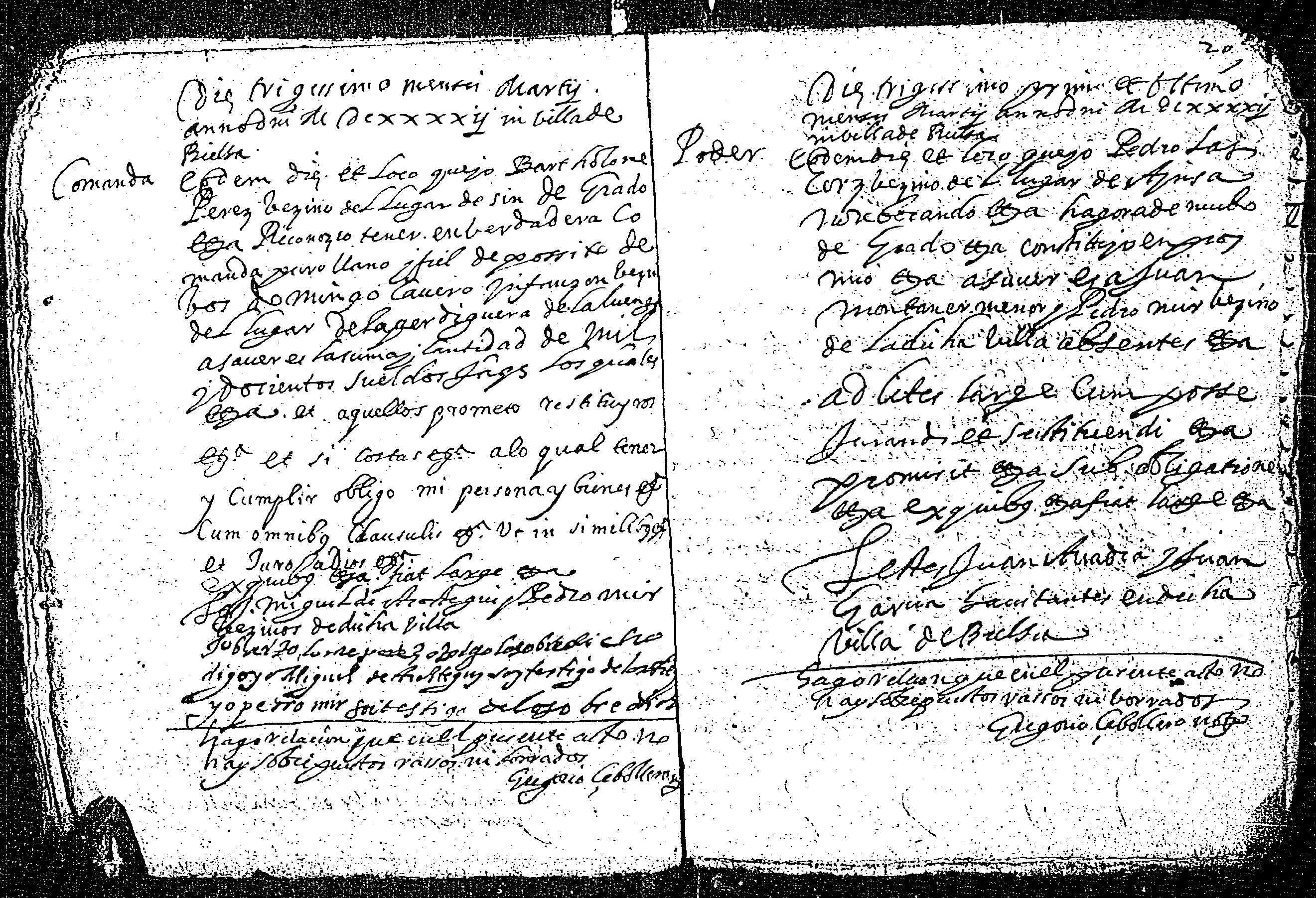 | Contenido: Pedro Lascorz, vecino del lugar de Aynsa, constituye sus procuradores a Juan Montaner menor y Pedro Mur vecinos de la villa de Bielsa. |