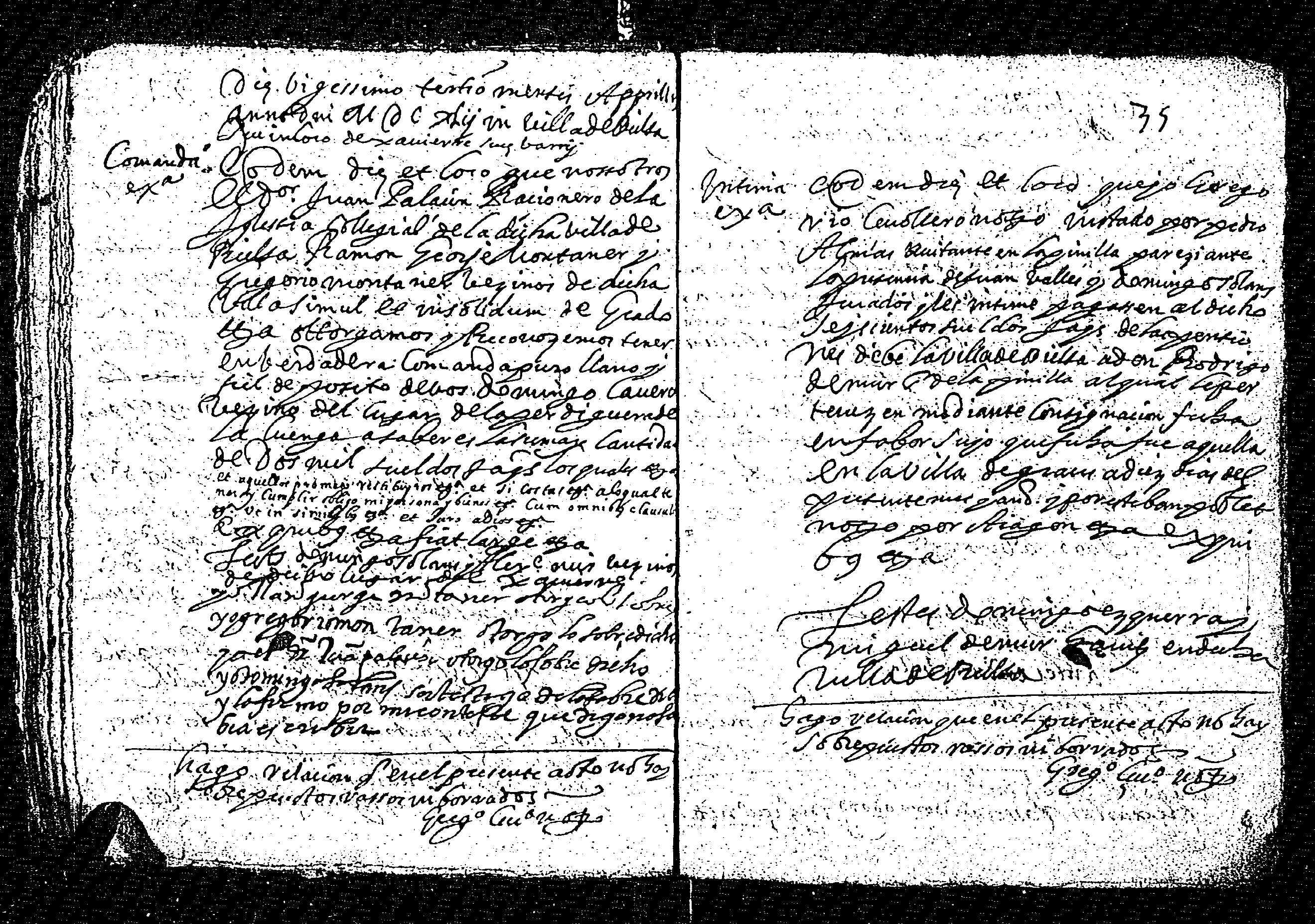 | Contenido: Mss. Juan Falceto, doctor, racionero de la colegial de la villa de Bielsa, Ramón Geroge Montaner y Gregorio Montaner, vecinos de dicha villa, reconocen tener comanda a favor de Domingo Cavero, infanzón, vecino de La Perdiguera por la suma de 2000 s. Jaq. |