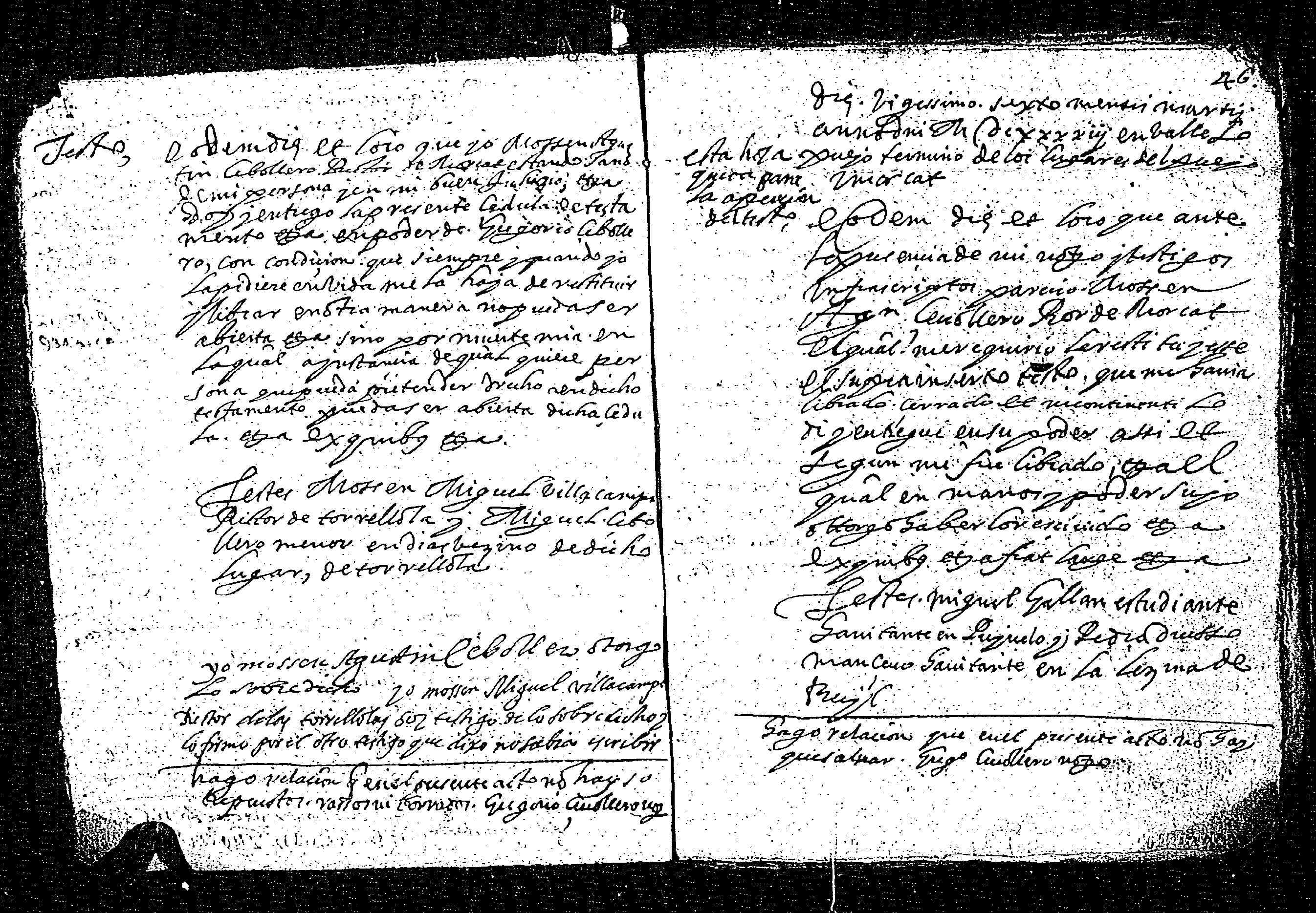 | Contenido: Aperción del testamento otorgado por mss. Agustín Cebollero, rector de Morcat. |