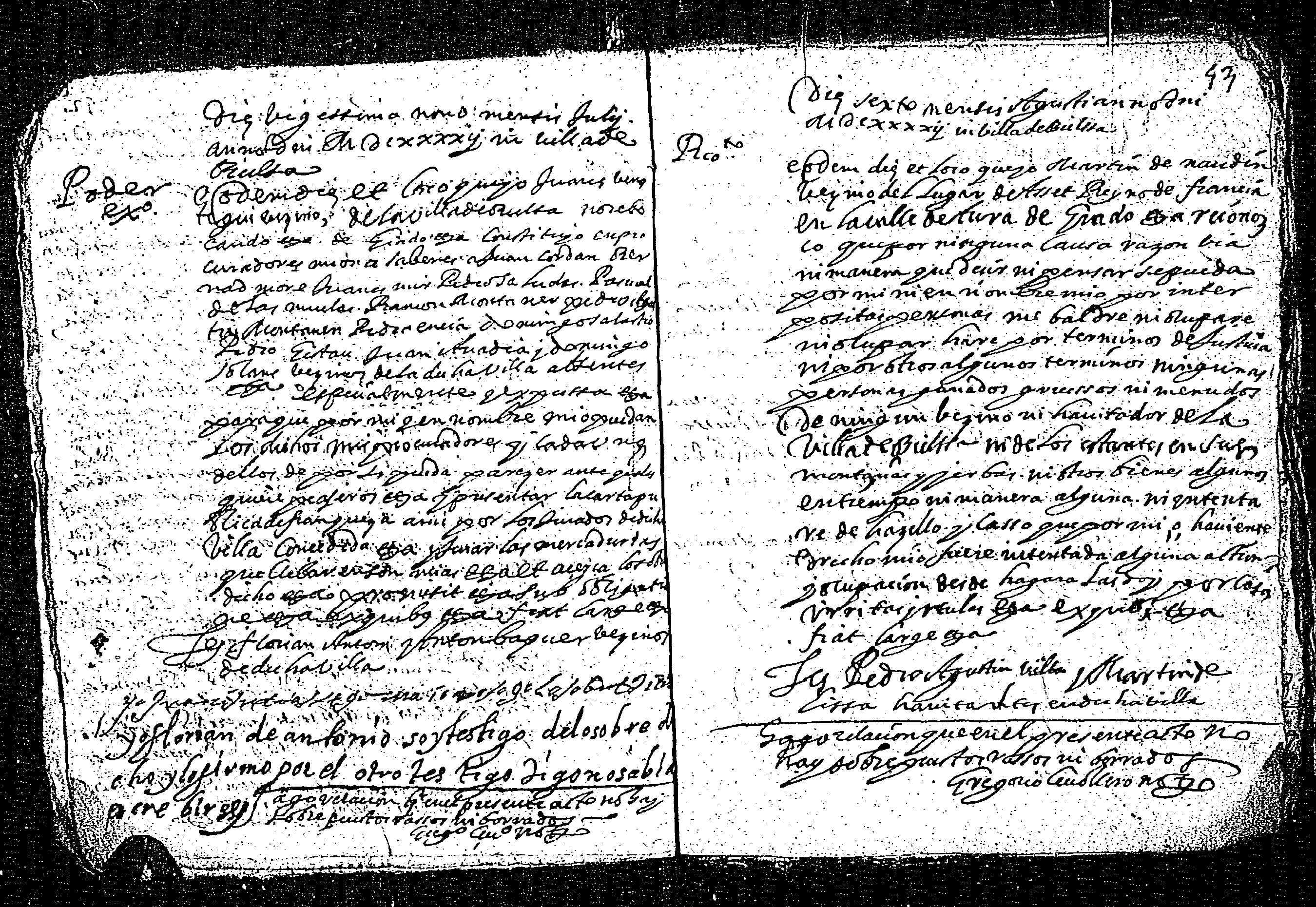| Contenido: Juanes Berastegui, vecino de la villa de Bielsa, nombra sus procuradores a Juan Cordan, Bernad More, Juan Esmir, Pedro Saludas, Pascual de las Muelas, Ramón Montaner, Pedro Martín Montaner, Pedro Garcia, Domingo Salastro, Pedro Gistau, Juan Ituadia y Domingo Solans, vecinos de la villa para que puedan presentar carta pública de franqueza para las mercadurías que llevan, concedida por dicha villa. |