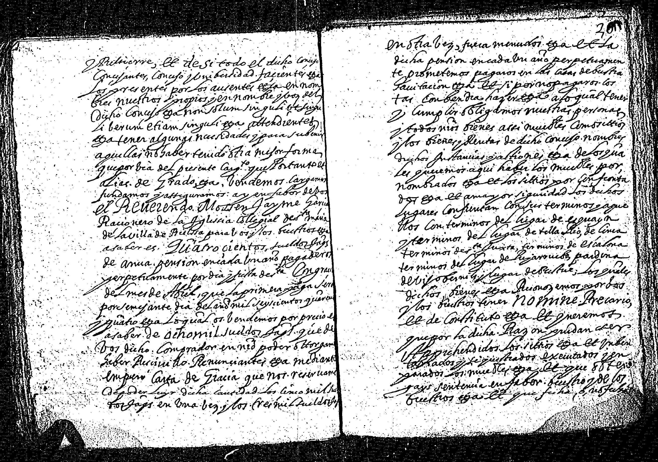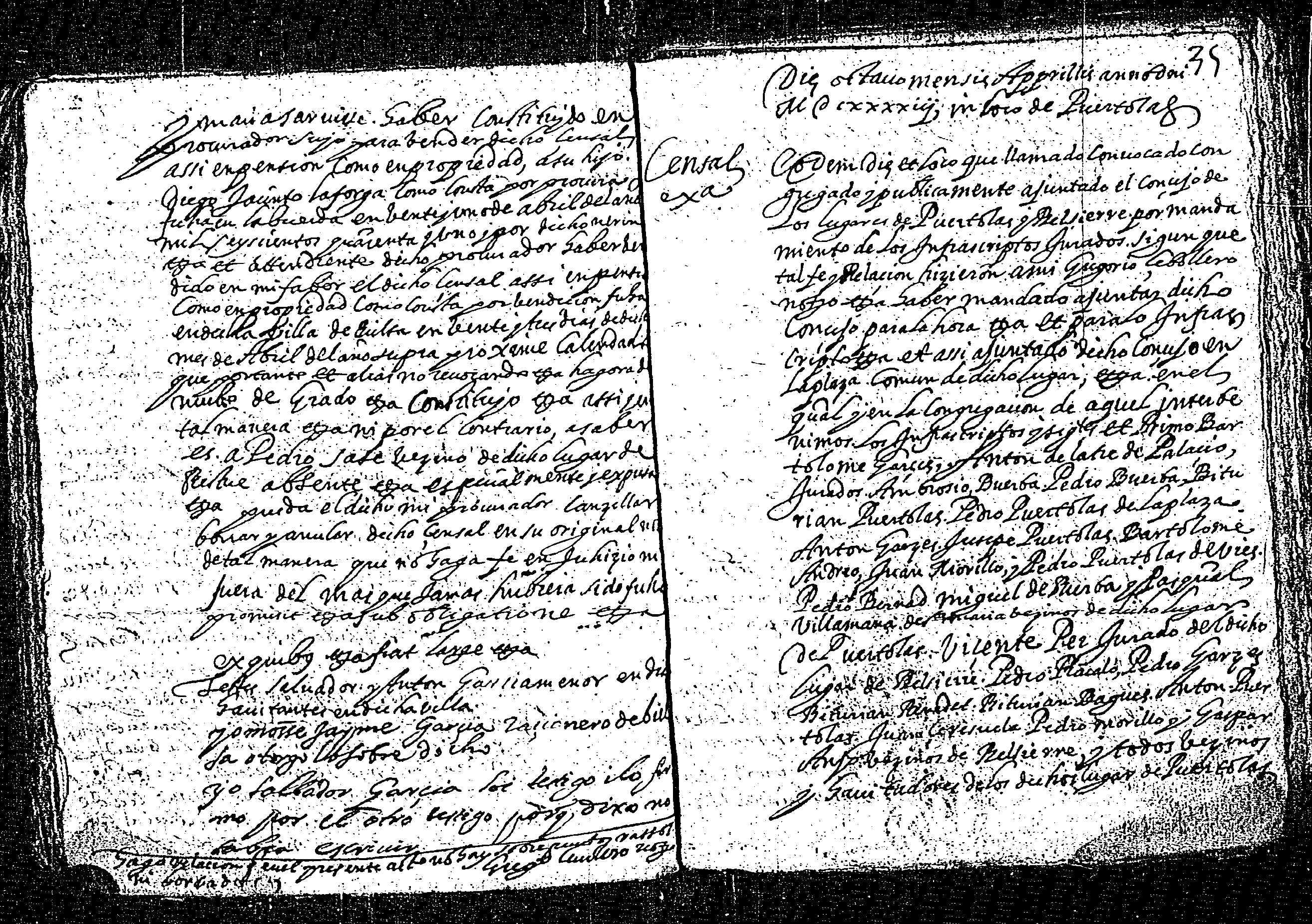 | Contenido: Convocado el Concejo General del lugar de Puertolas presentes Bartolomé Garces y Antonio de Latre Palacio, jurados; venden un censal de 400s. jaq. de anual pensión pagadera por el dia de Santa Engracia de abril, empero carta de gracia, por precio 8000 s. jaq. a favor de mss. Jayme Garcia, racionero de la colegial de la villa de Bielsa. |