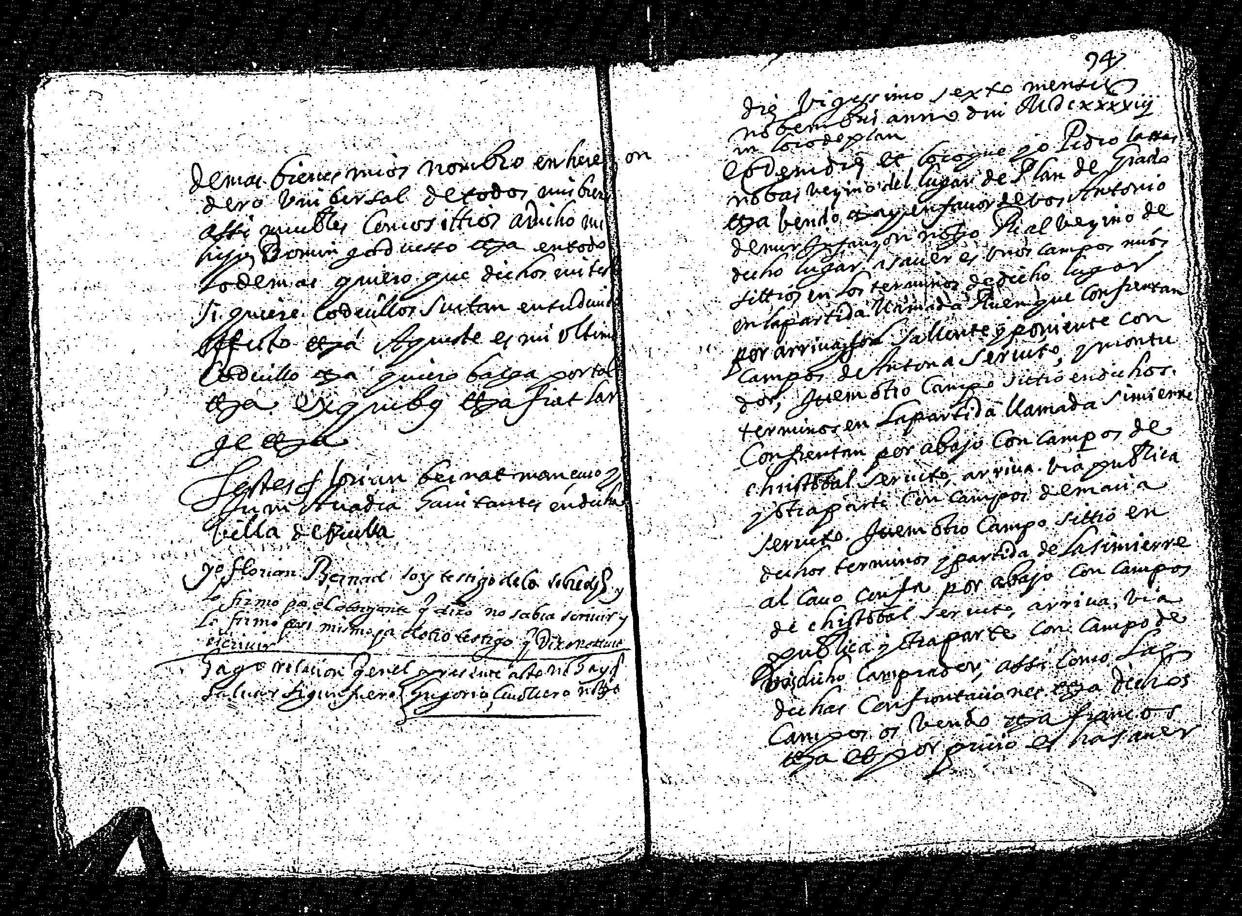| Contenido: Pedro Cassasnovas, vecino del lugar de Plan, vende a favor de Antonio de Mur, infanzón, notario, vecino de dicho lugar, unos campos sitos en dicho lugar, por precio de 1600 s. jaq. |