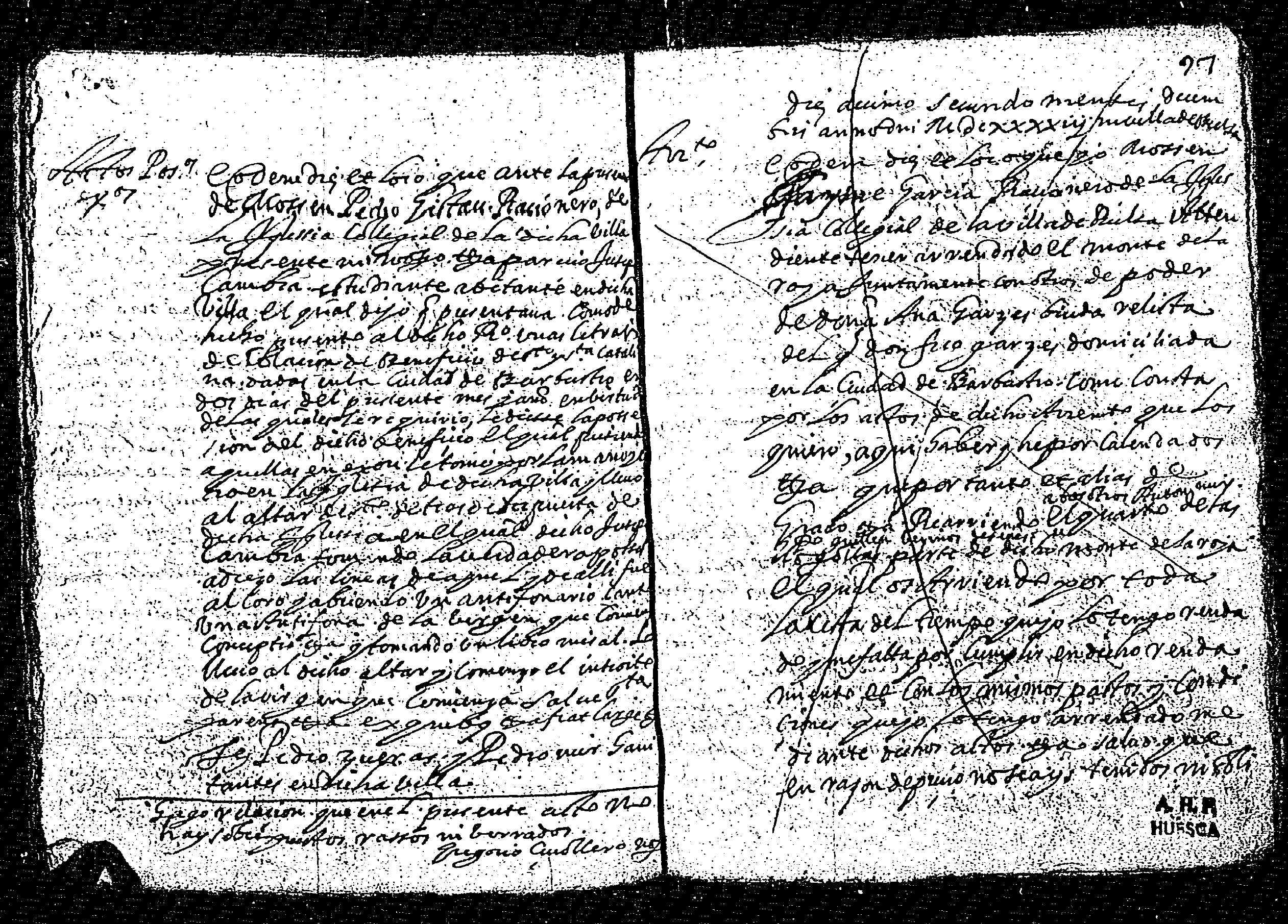 | Contenido: [tachado].Mss. Jayme Garcia, racionero de la colegial de la villa de Bielsa, atendiente el tener arrendado junto con otros el Monte de la Roja, propiedad de Ana Garcés, viuda de Francisco Garcés, domiciliada en la ciudad de Barbastro; rearrienda por el tiempo que resta de su arriendo dicho monte a favor de Anton Mir y Pedro Guillen, por el precio de 2540 s. jaq. |