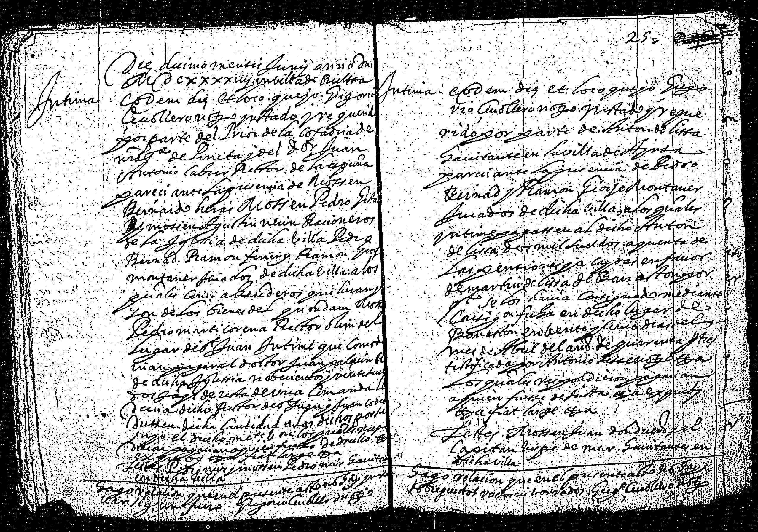 | Contenido: Antón de Lissa, habitante en la villa de Bielsa, intima a Pedro Bernad y Ramon George Montaner, jurados de dicha villa, la suma de 2000 s. jaqueses por pensiones caidas a favor de Martín de Lissa y consignadas en 1640. |