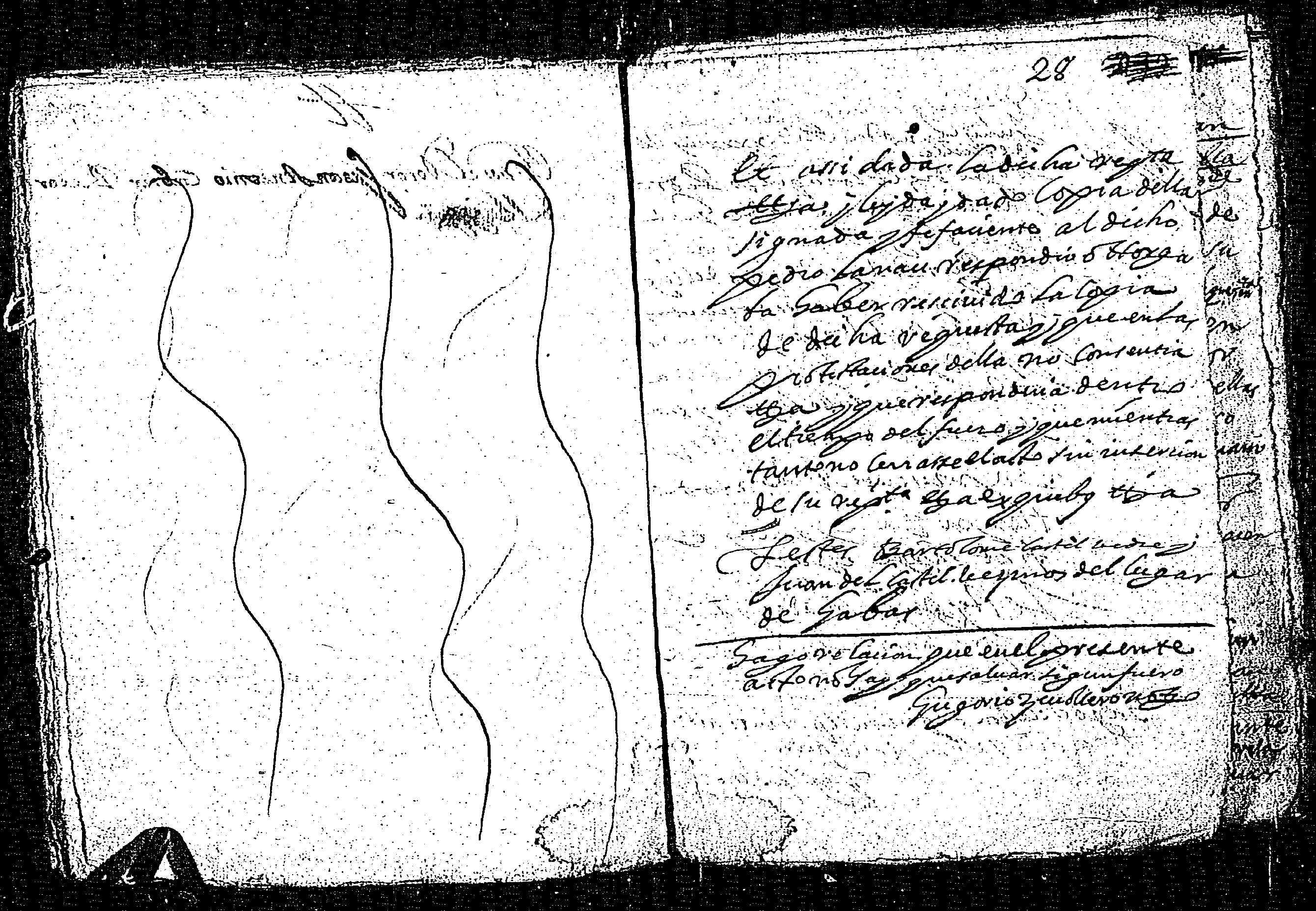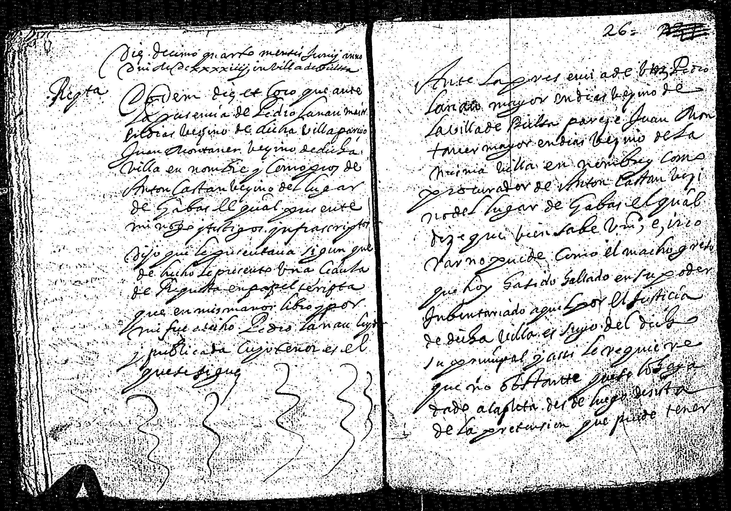 | Contenido: Compadece Pedro Lanau mayor en días, vecino de la villa de Bielsa, presentando una carta de requesta en nombre de Antón Castán, vecino del lugar de Gabás, entregada a aquel por Juan Montaner mayor en días, como procurador de Antón Castán, afirmando un macho inventariado por el justicia de la villa es de dicho Antón Castán. |