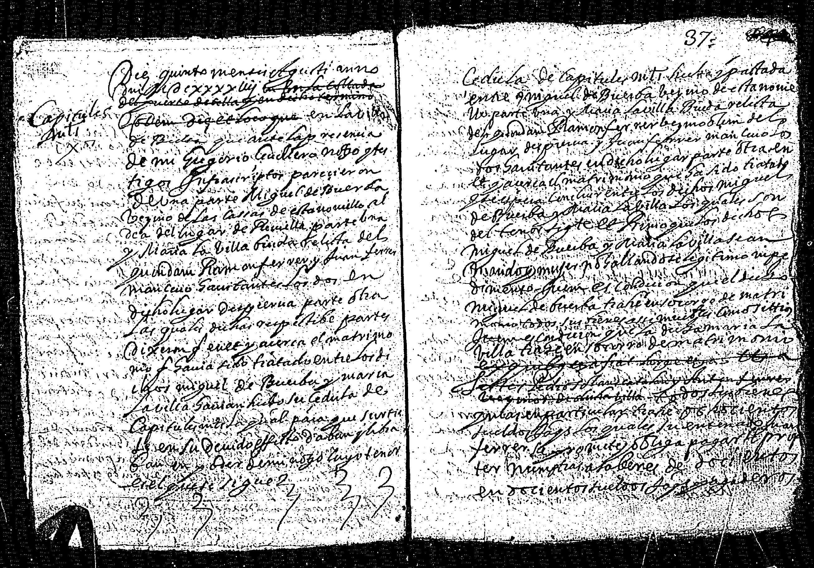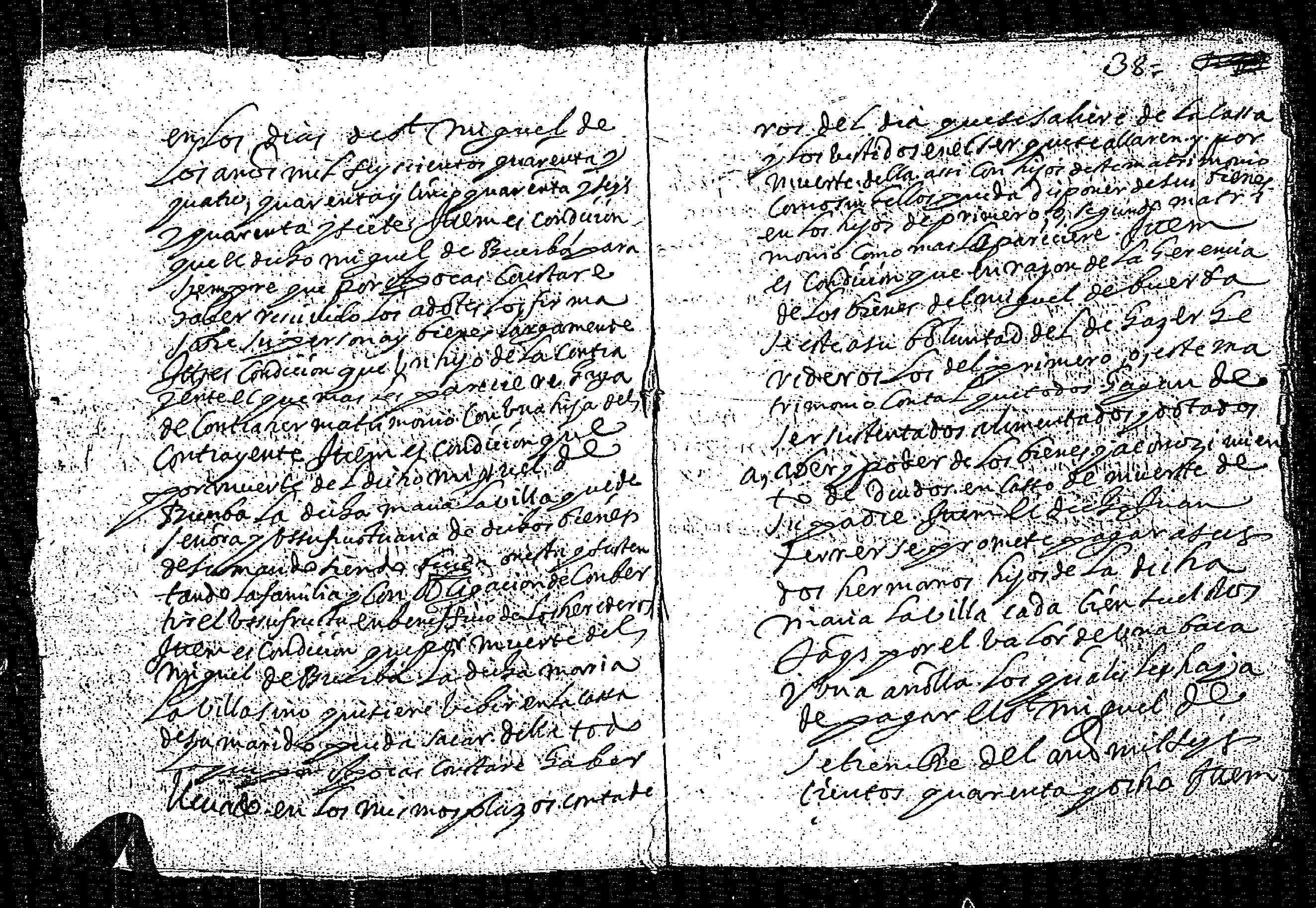 | Contenido: Comparecen de una parte Miguel de Buerba, vecino de las Casas de Estamovilla, aldea del lugar de Revilla, de la otra María Villa viuda de Antón Ferrer y Juan Ferrer, mancebo, habitantes en Espierba, para capitular matrimonio entre Miguel de Buerba y María Villa. |