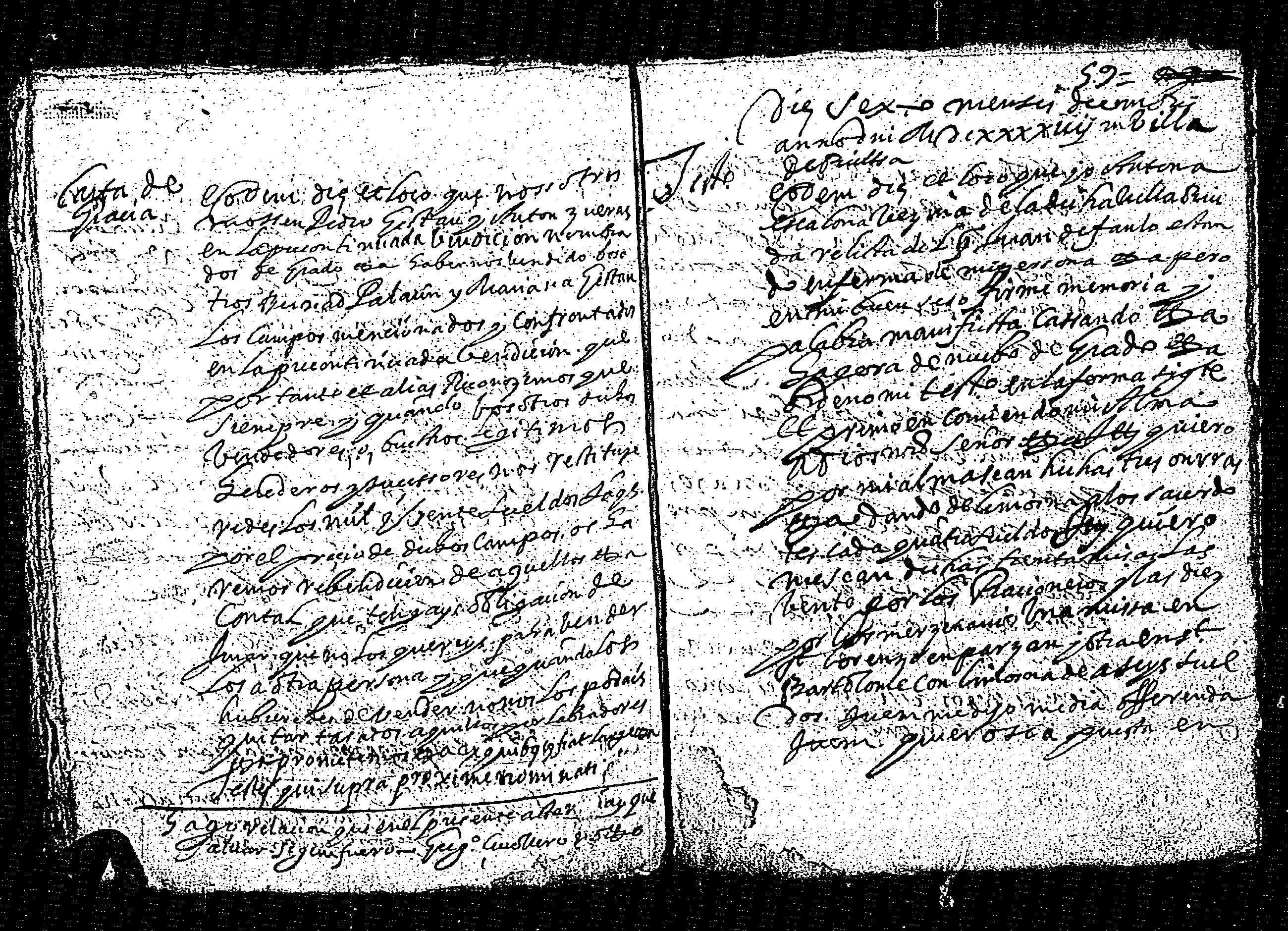 | Contenido: Pedro Gistau y Antón Zueras, domiciliados en la villa de Bielsa aceptan haber recibido unos campos en la precalendada vendición de Bernad Palacin y Mariana Gistau, conyuges, vecinos de la villa y aceptan carta de gracia reconociendo la deuda de dichas cantidades. |