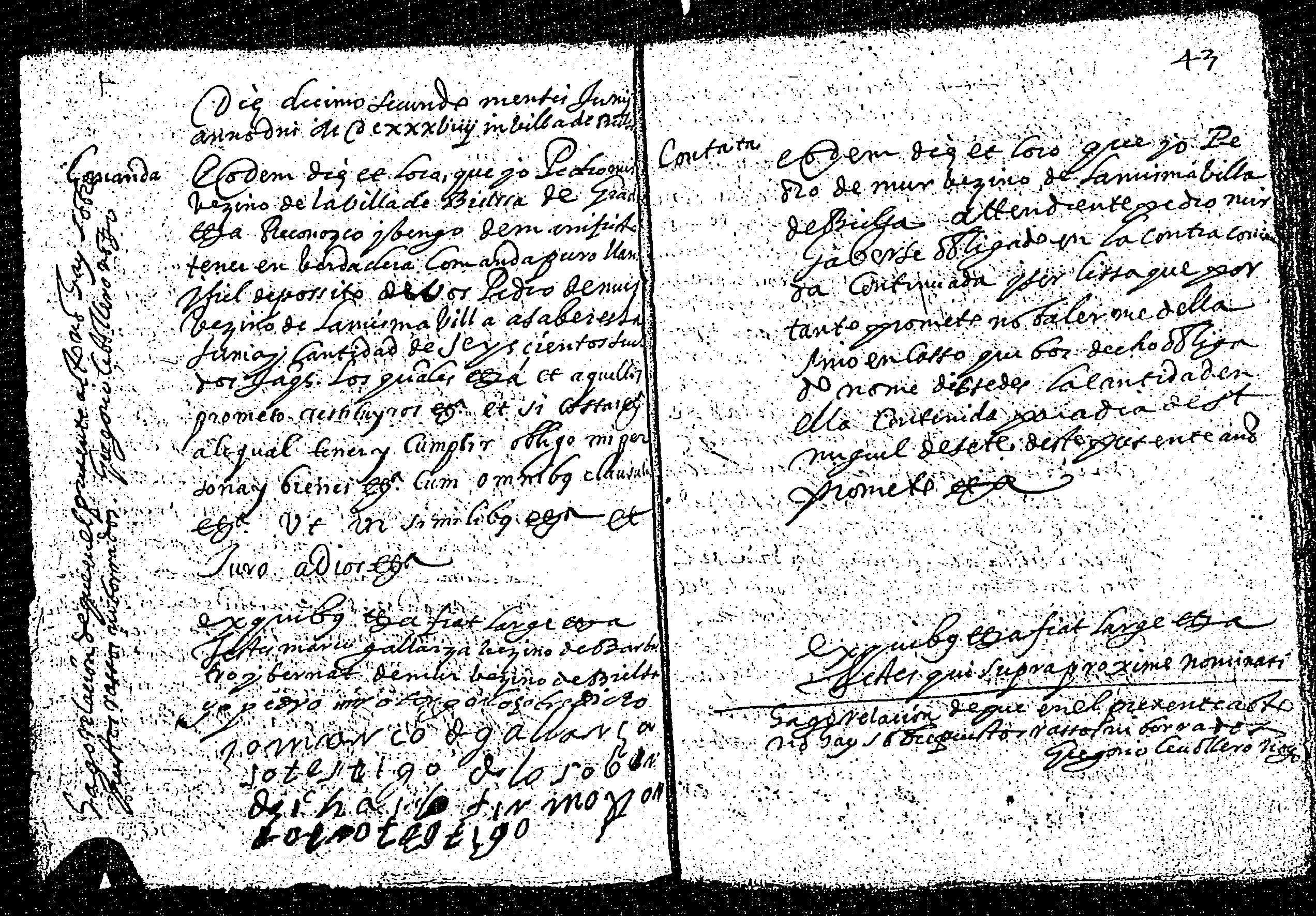 | Contenido: Pedro de Mur otorga contracarta a Pedro de Mir, vecino de la villa de Bielsa. |
