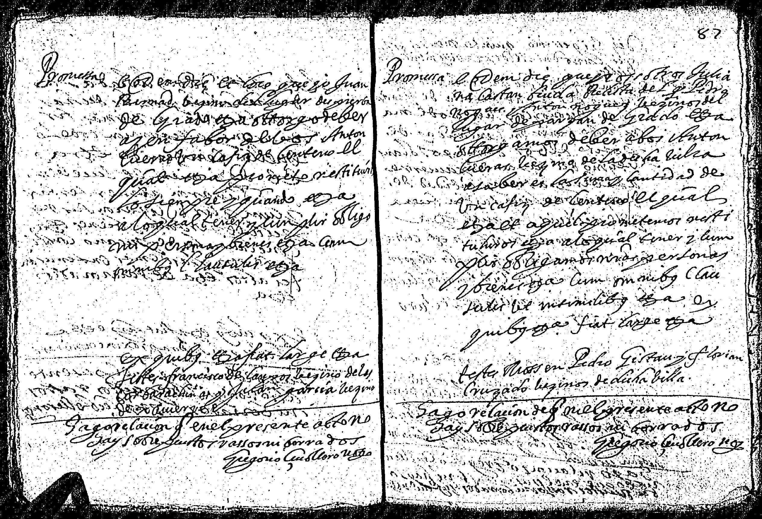 | Contenido: Juliana Castán viuda de Pedro Noguer y Antón Noguer vecinos de Parzán prometen a Antón Zueras vecino de Bielsa devolver un cahiz de centeno. |