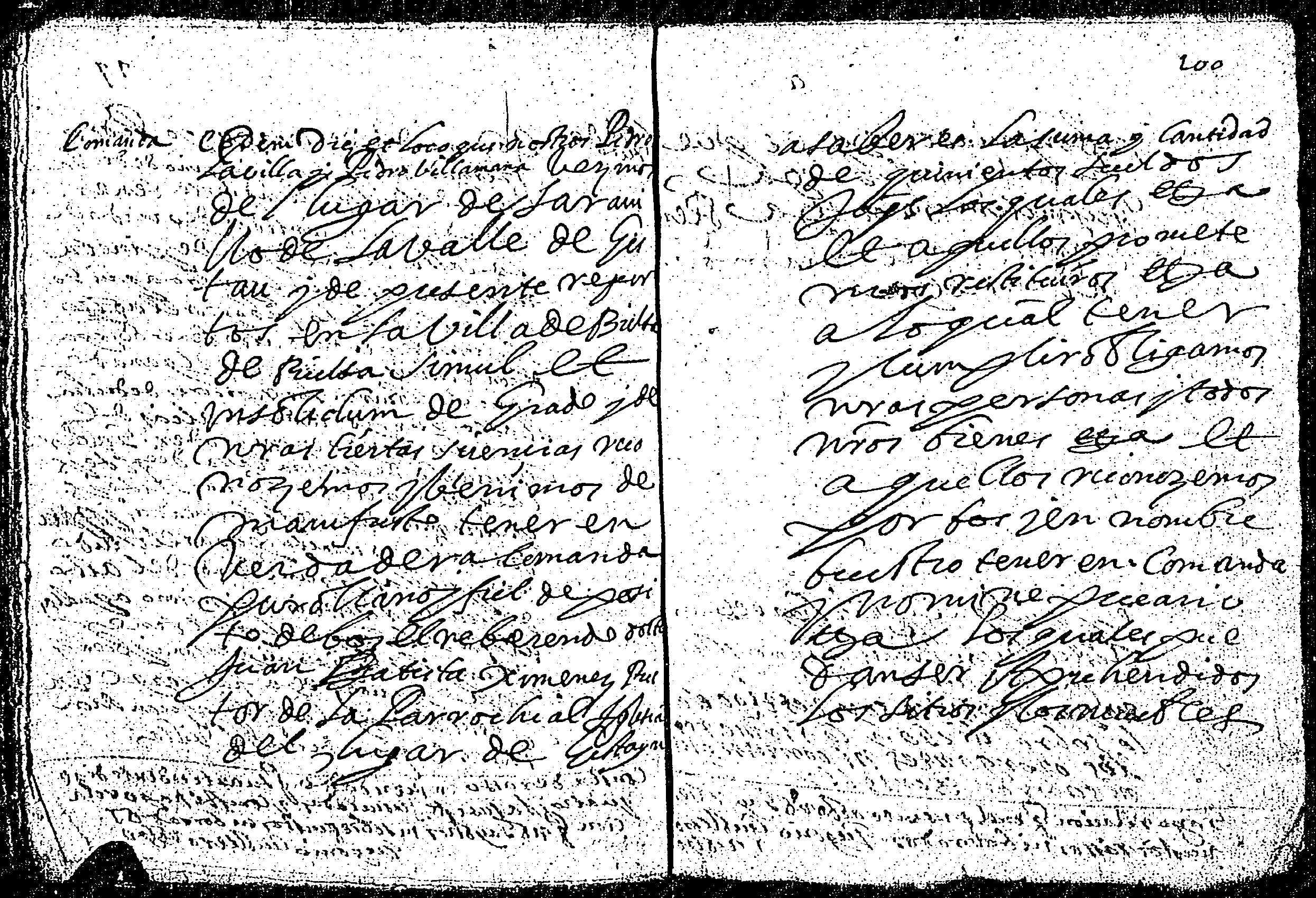 | Contenido: Pedro Lavilla y Pedro Villamana vecinos el lugar de Saravillo valle de Gistau y de presente en la villa de Bielsa reconocen tener comanda a favor de Juan Bautista Ximenz rector de la parroquial de Gistayn la suma de 500 sueldos. |