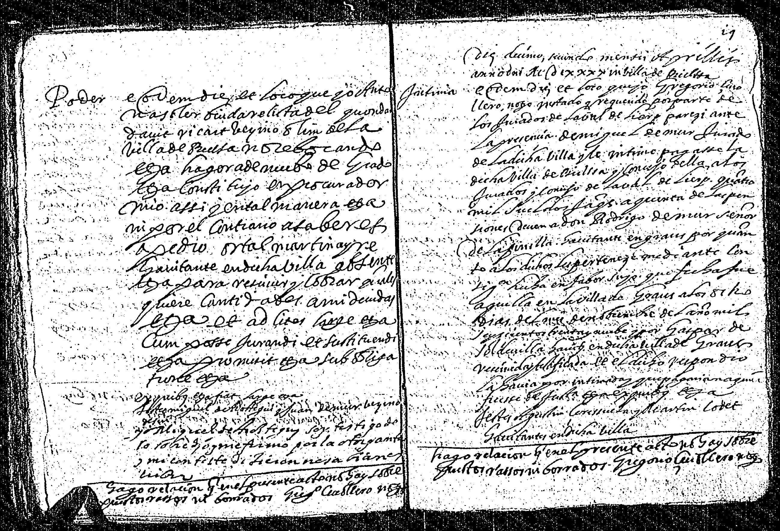 | Contenido: Antonia Soler viuda de David Ricart vecino de la villa de Bielsa constituye en su procurador a Pedro Ortal “Martínaire? habitante en la villa de Bielsa. |