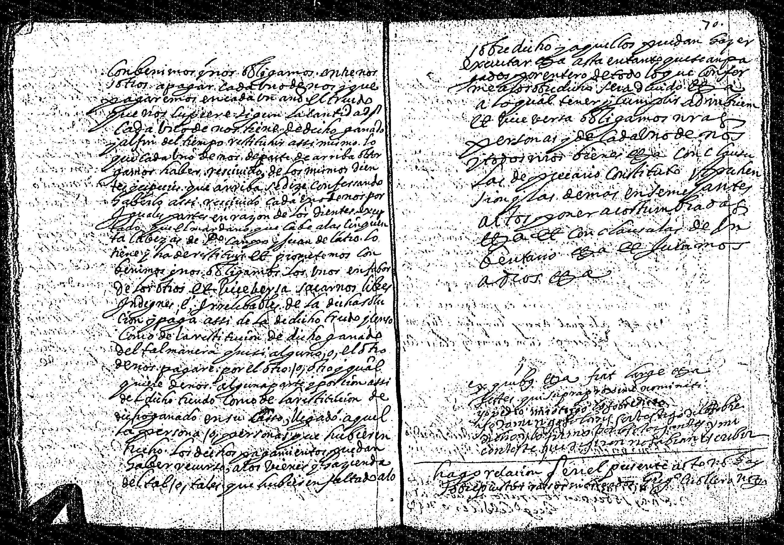 | Contenido: Jayme Escalona y Pedro Escalona, padre e hijo, y a Antón Escalona, yerno de Juan de Latre, vecinos de Chisagues, Alexandre Mir, vecino de Xavierre, Pedro del Campo y Martín Bernat, vecinos de Bielsa habiendo tomado a treudo de mss. Bernardo Heras, racionero de la colegial de la villa de Bielsa 275 cabezas de ganado ovejuno y cabrio por tiempo de 6 años continuos y por cada cabeza 1 s. 8 d. jaq. al año, reparten dichas cabezas entre ellos y se comprometen a pagar cada uno por casa cabeza lo estipulado en diccho treudo, cumpliendo sus condiciones. |