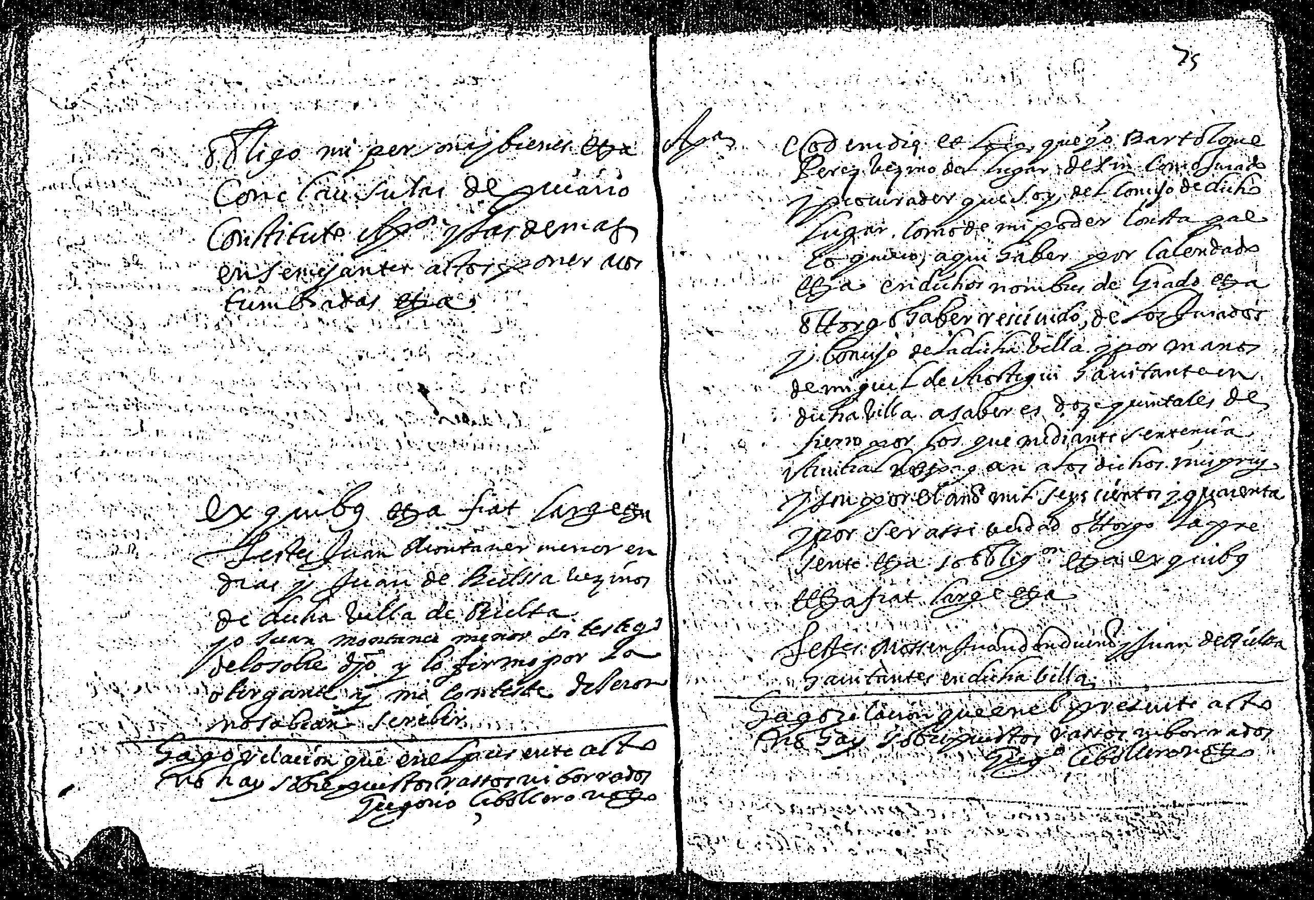 | Contenido: Bartolomé Perez, vecino del lugar de Sin como procurador del concejo de dicho lugar, reconoce haber recibido del concejo de la villa de Bielsa por manos de Miguel de Arostegui, habitante en la villa, dos quintales de fierro debidos por la pensión de 1640. |