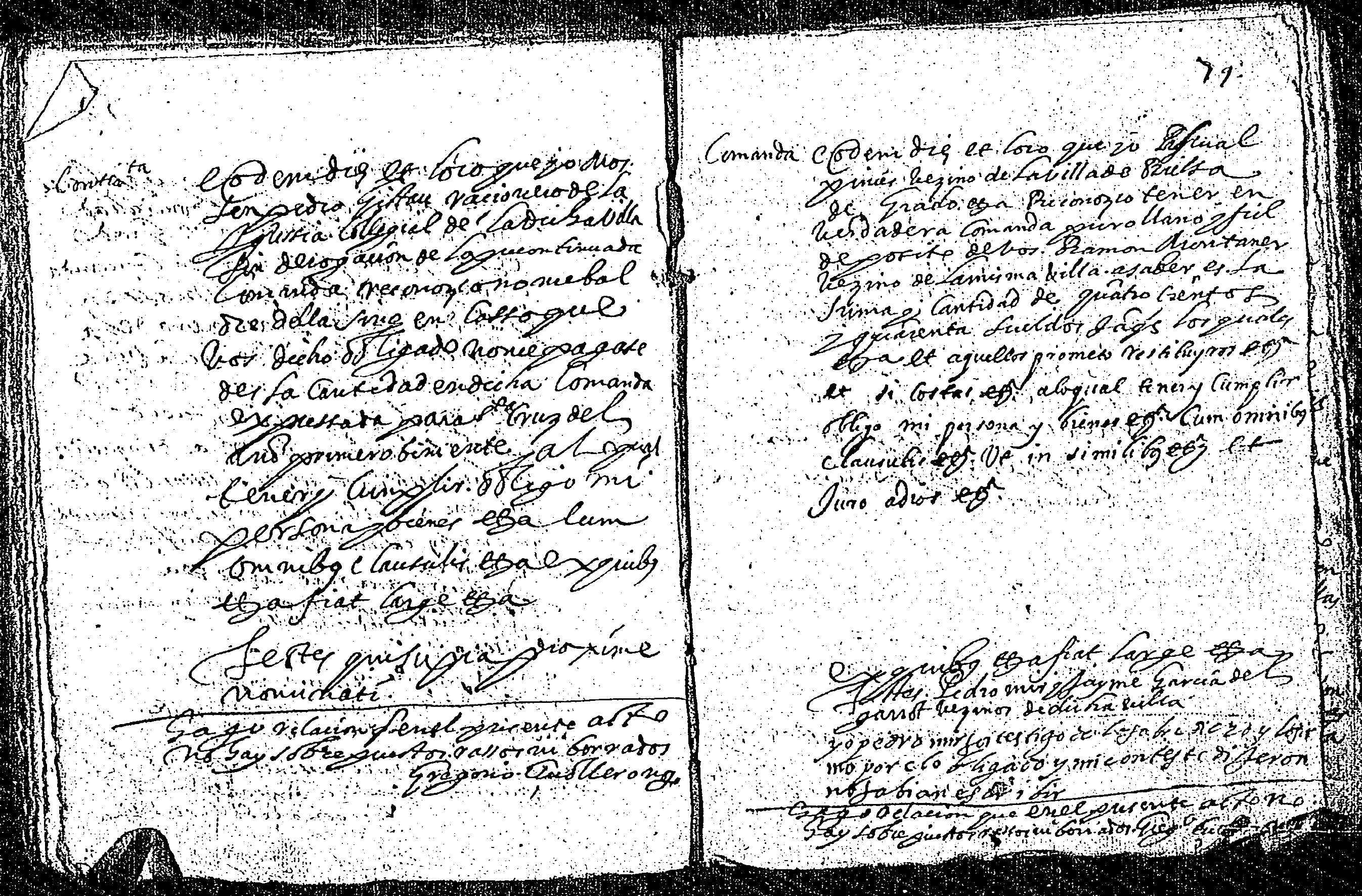 | Contenido: Pascual Piniés, vecino de la villa de Bielsa reconoce tener comanda a favor Ramón Montaner, vecino de la villa, por la suma de 440 s. jaq. |