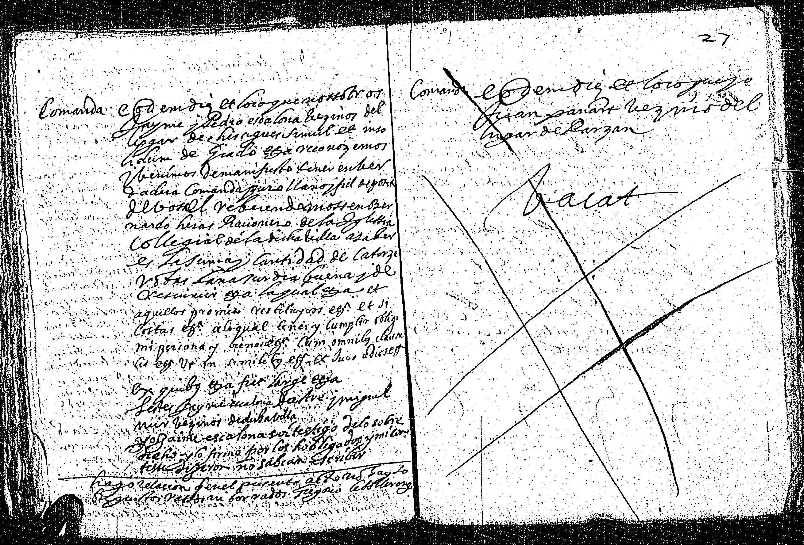 | Contenido: Jaime y Pedro Escalona, vecinos de Chisagües, reconocen tener comanda a favor de mss. Bernardo Heras, racionero de la colegial de Bielsa por 14 arrobas de lana. |