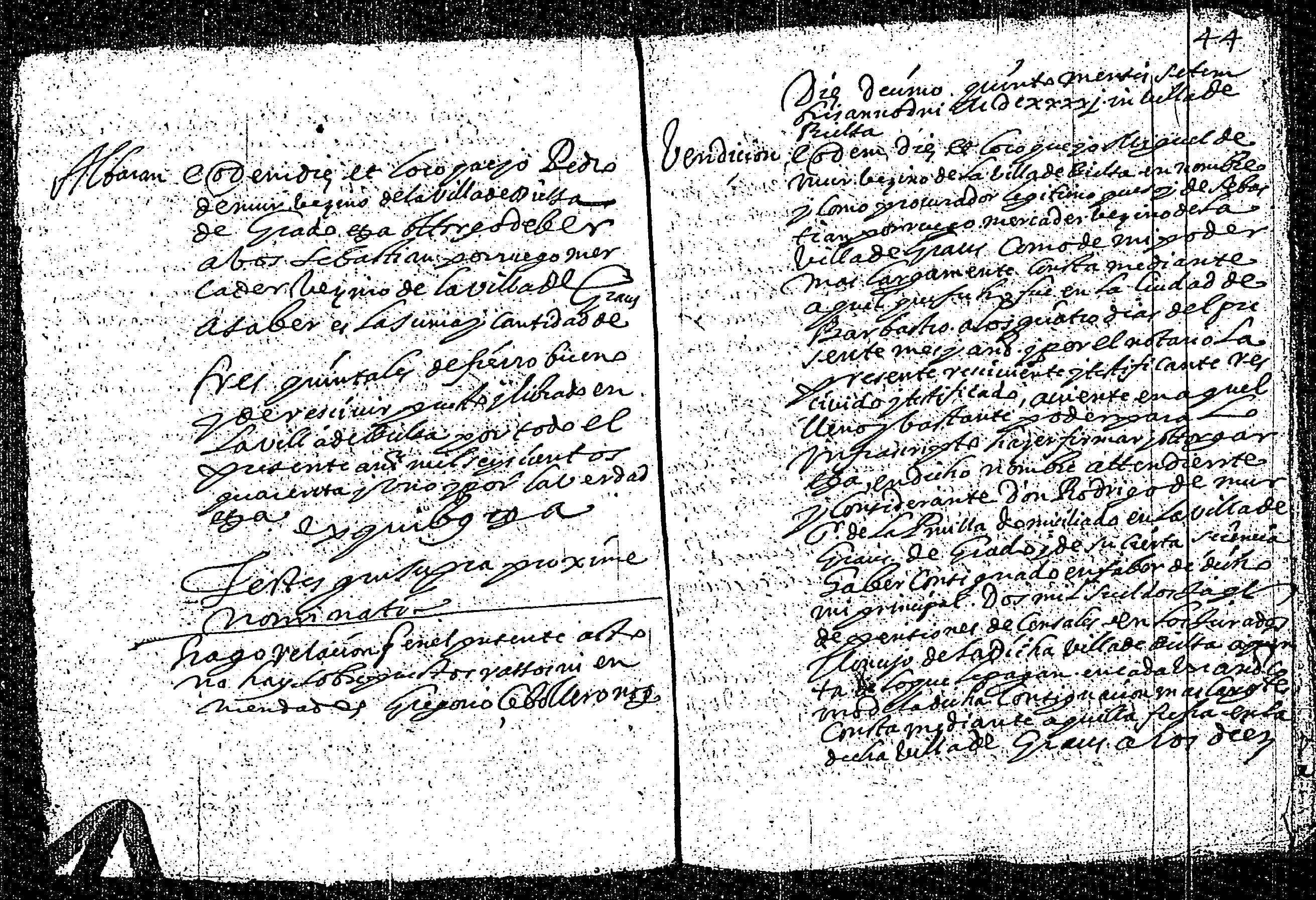 | Contenido: Pedro de Mur, vecino de Bielsa otorga deber a Sebastian Porruego mercader, vecino de la villa de Graus, 3 quintales de fierro. |