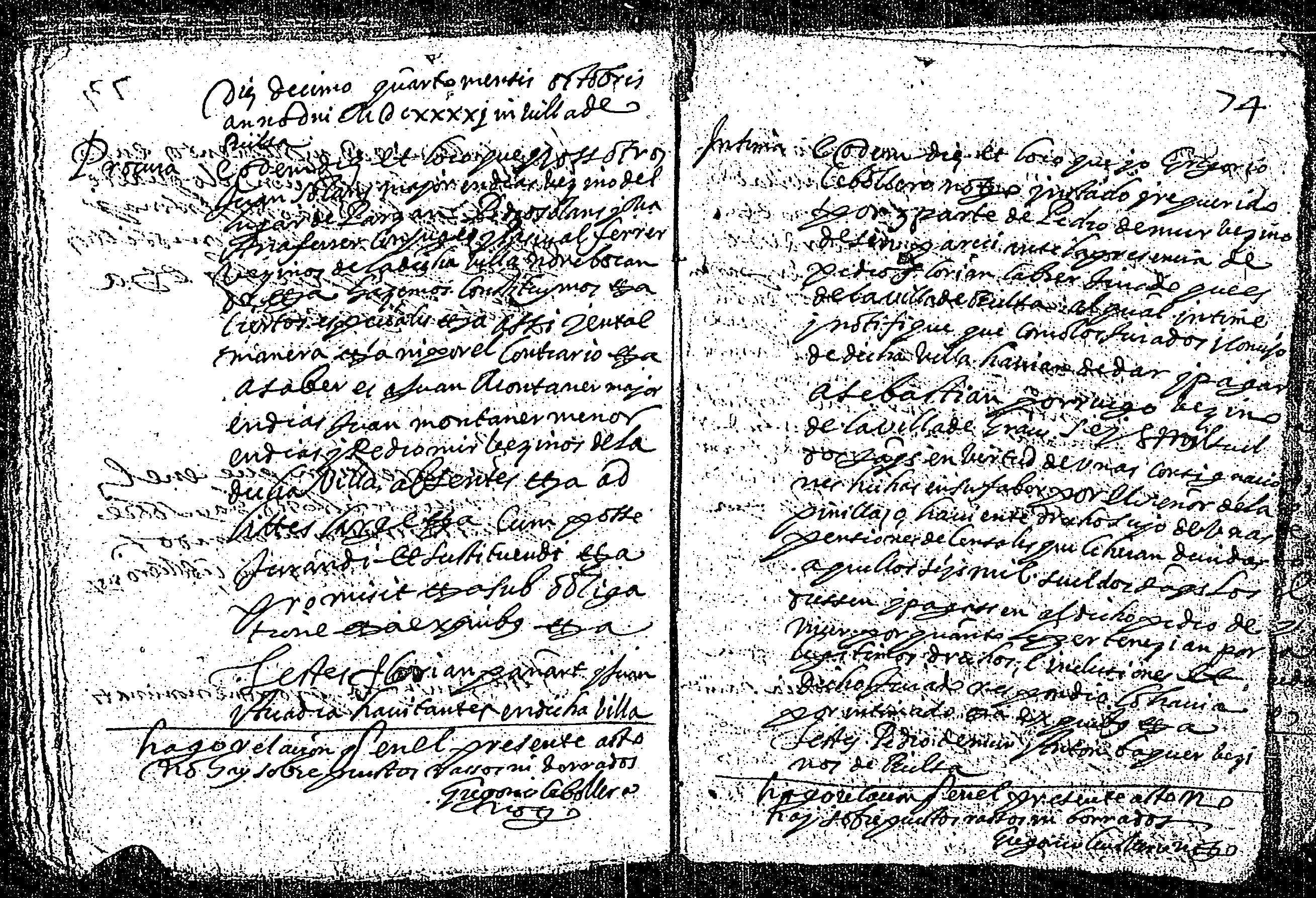 | Contenido: Requerido por Pedro de Mur, vecino de Sin, comparece Pedro Julian Claver, jurado de la villa de Bielsa al que intima que la villa de Bielsa había de pagar a Sebastián Porruego vecino de la villa de Graus 6000 s. jaq. en virtud de unas consignaciones hechas a su favor por el Señor de la Pinilla de pensiones censales. |