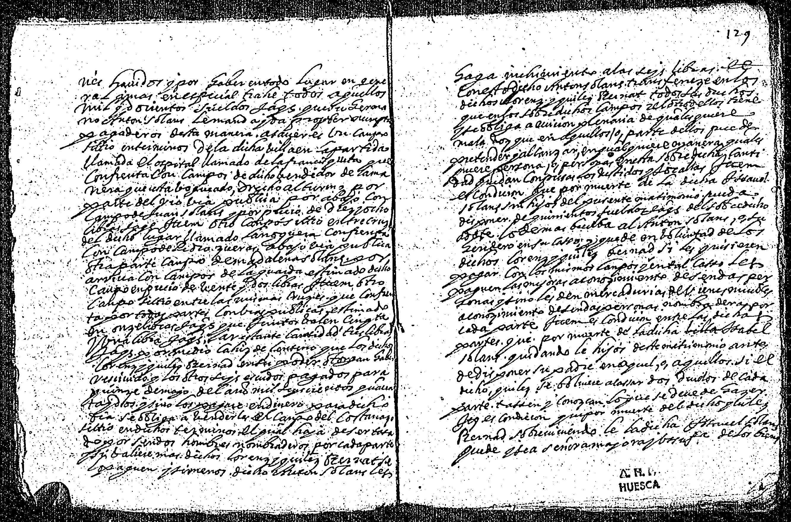 | Contenido: Comparecen de una parte Lorenzo Quilez Bernat y de la otra, Anton Solans, e Isabel Solans, todos vecinos de Parzan, para capitular matrimonio entre Lorenzo Quilez Bernat e Isabel Solans. El novio aporta todos sus bienes dando su padre todos los suyos pro nuntias quedando mayor y señor de por vida y asegurandose lo que considere para su alma. La novia aporta de dote 1.200 s. pagaderos por Antonio Solans en forma de los bienes siguientes: 2 campos sitos en Parzan, asimismo se compromete a venderles otro campo por 120 s. y clausulas habituales. |