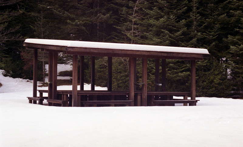 | Contenido: Fotografía de la instalación artística Mesa de Picnic, del artista iraní Siah Armajani, instalada en el valle de Pineta en el marco del programa Arte y Naturaleza de la Diputación de Huesca. |