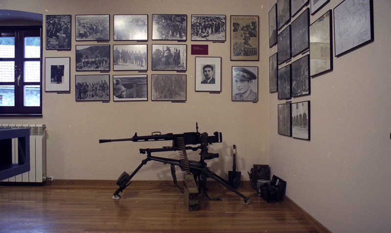 | Contenido: Ametralladora y fotografías de oficiales de la 43 División y diversos grupos de militares y escenas relacionadas con la Bolsa de Bielsa. |