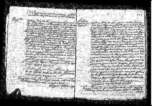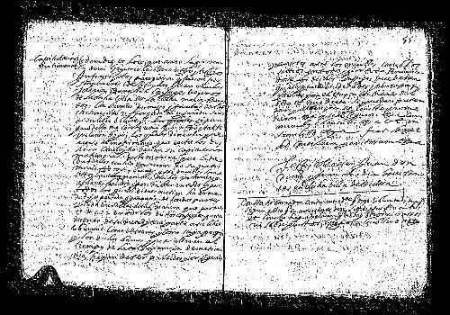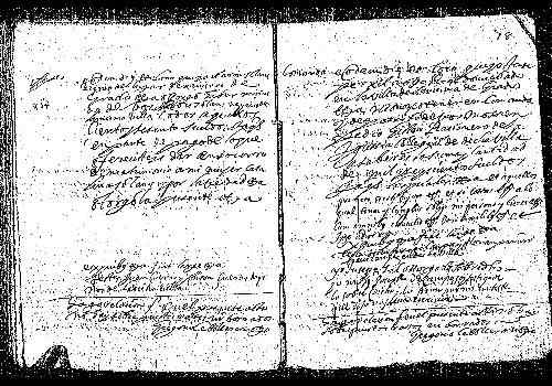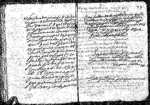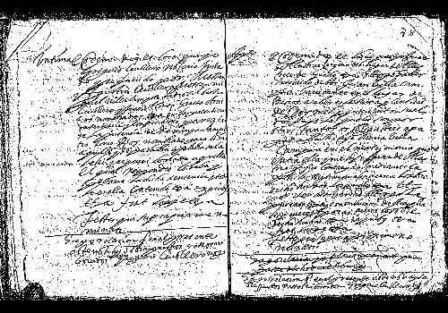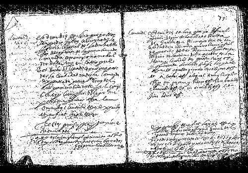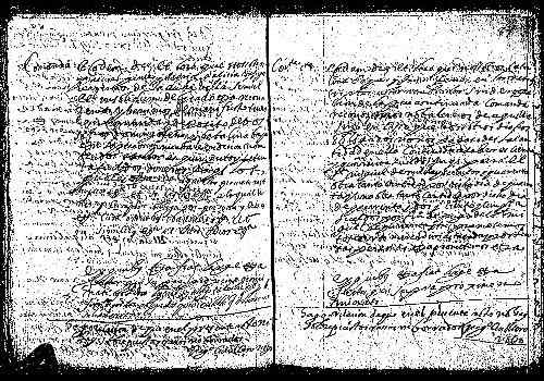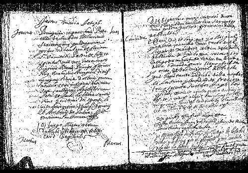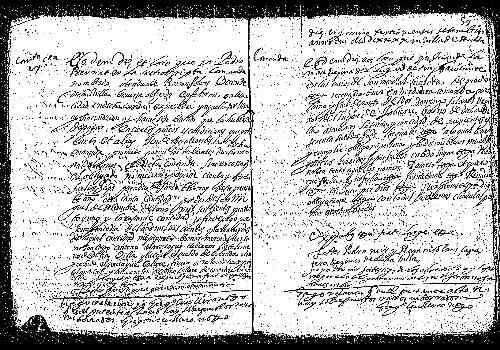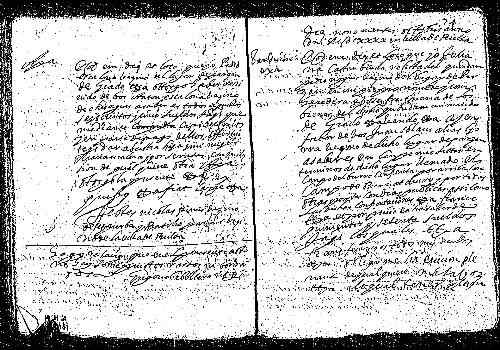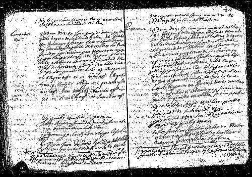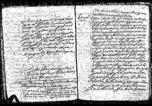 | Descripción: Lupercio de Ballarín e Isabel de Alastrue, cónyuges, vecinos del lugar de Bisalibons y Juan de Ballarín y Ana Lamora. Cónyuges y habitantes en dicho lugar atendientes a la capitulación matrimonial hecha entre dichos Juan de Ballarín y Ana Lamora ( Instrumnento hecho Bisalibons 10/08/1637 Cosme Puyce... |
