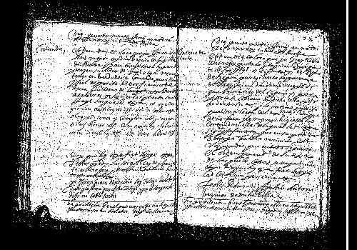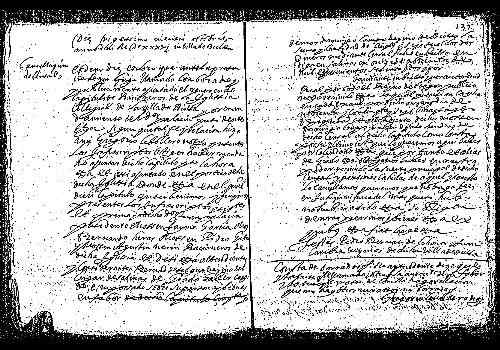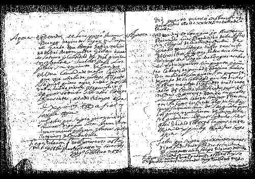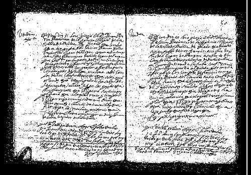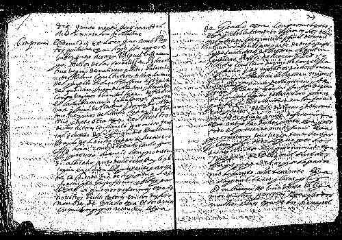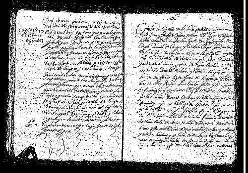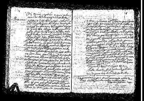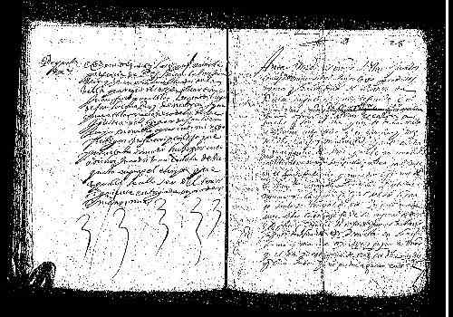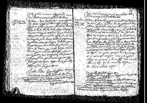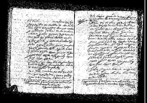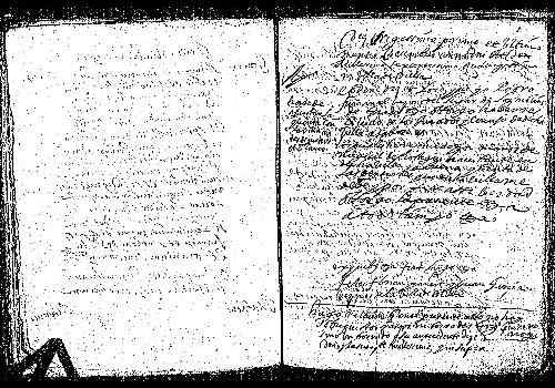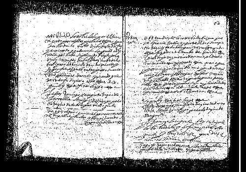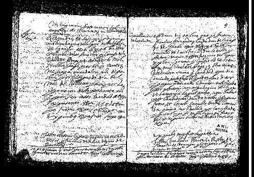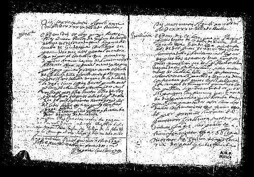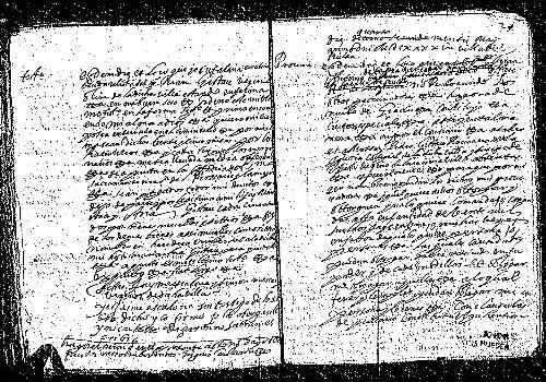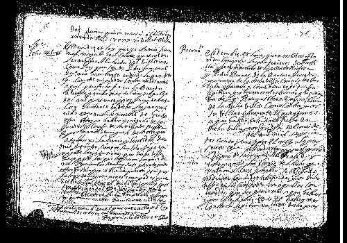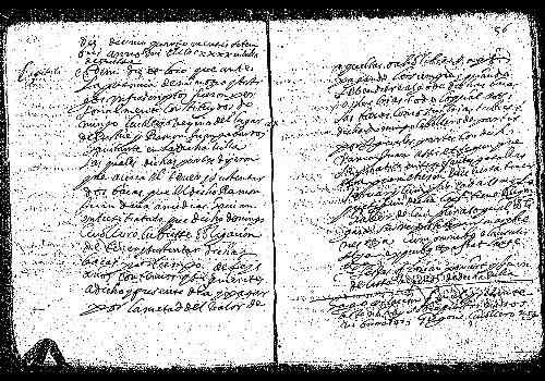 | Descripción: Lit.: “Hago relacion que en el presente acto no hay sobrepuesto rasos ni borrados, este acto se cancelo el 26 de octubre de 1690?Martin Cambra, vecino de la villa de Bielsa, da a treudo a Bernat More, vecino de dicha villa y habitante en Las Covarachinas 27 cabezas de ganado por precio de 2 s. por... |
