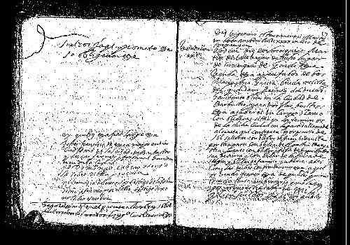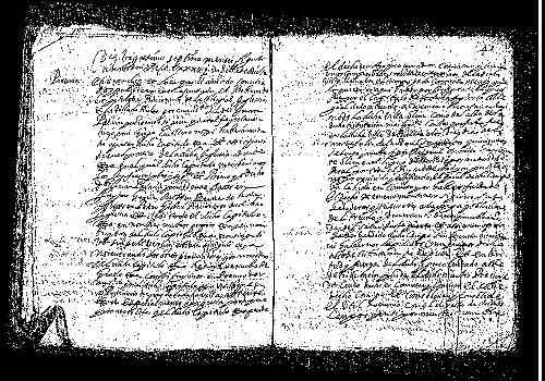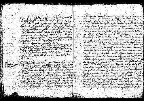 | Descripción: Convocado el Concejo General de la villa de Bielsa por llamamiento de Florián Pañart corredor presentes Antonio Cabrer, Juan Valler y Ramón Jorge, jurados; de una parte y de la otra Pedro Viñau y Antonia [en blanco] cónyuges habitantes en dicha villa capitulan sobre la administración de la capilla y... |