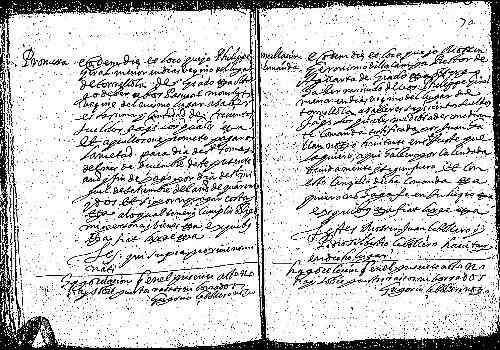 | Descripción: Juan Solans mayor vecino de Parzán nombra sus procuradores a Juan Montaner mayor y a Juan Montaner menor vecinos de Bielsa.... |
