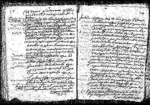 | Descripción: Juan Mir, mancebo habitante en Bielsa deja a treudo a Pedro Mir padre y Anton Campos, vecinos de Bielsa, 34 ovejas por 15 s. anuales en total pagaderos para San Miguel de septiembre, con la condicion de que le sean devueltas si contrae matrimonio.... |
