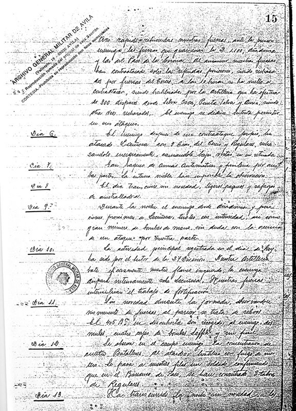 | Contenido: Diario de operaciones del estado mayor de la 72ª Brigada Mixta. Se producen numerosos enfrentamientos e intercambio de fuego en todas las posiciones. En una descubierta el 405º Batallón incauta a las tropas franquistas dos mulos y armamento. |