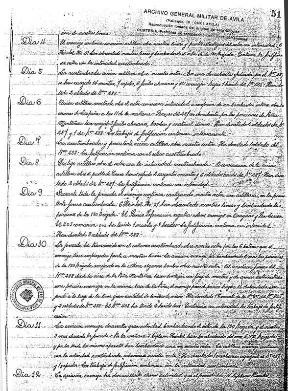 Temas: FUSILES, DESERCIONES, Bombardeos, AVIONES. HEINKEL-51 (HE-51), Aviación, Artillería, ARMAS, Acciones bélicas, Posiciones militares, |