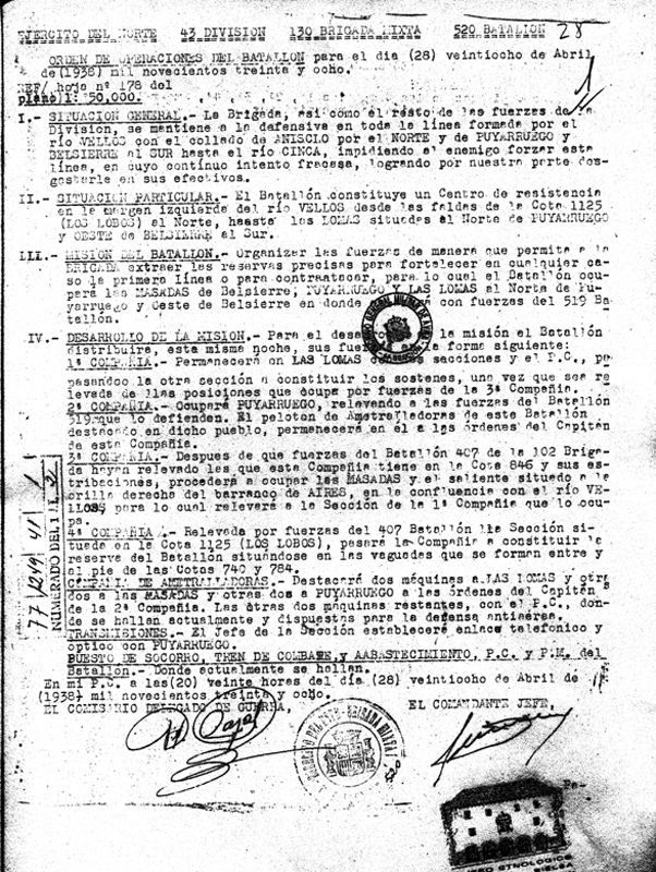 Nota: Referencia a la hoja 178 del plano 1:50000. Firman el Comandante Jefe del Batallón y el Comisario Delegado [...] Cajal. |