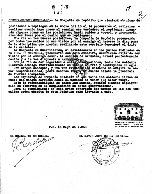 Nota: Firman el mayor jefe de la brigada Juan Lacasa Lardiés y el comisario de guerra Lorenzo Berdala. Ver Signaturas ES-ARA-MB-002-002-004-004 y ES-ARA-MB-002-002-004-005. |