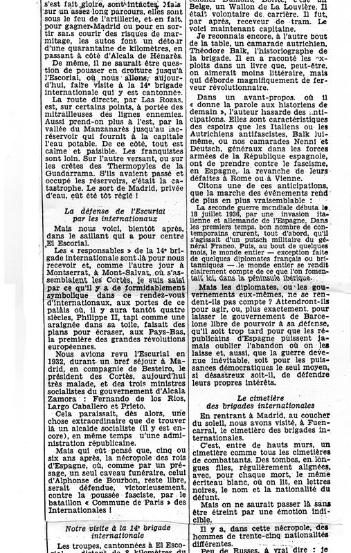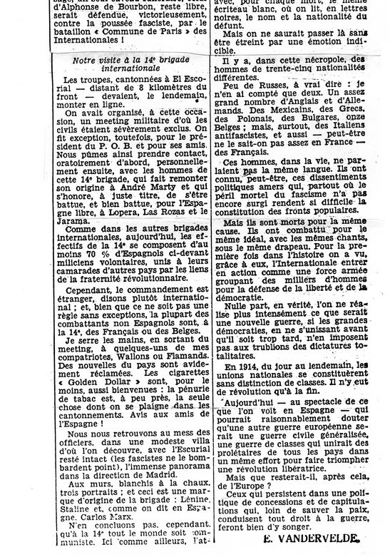 Contenido: Artículo de prensa y opinión sobre la guerra civil, las brigadas internacionales en el frente de Madrid en febrero de 1938 y la influencia de la guerra civil española en Europa.