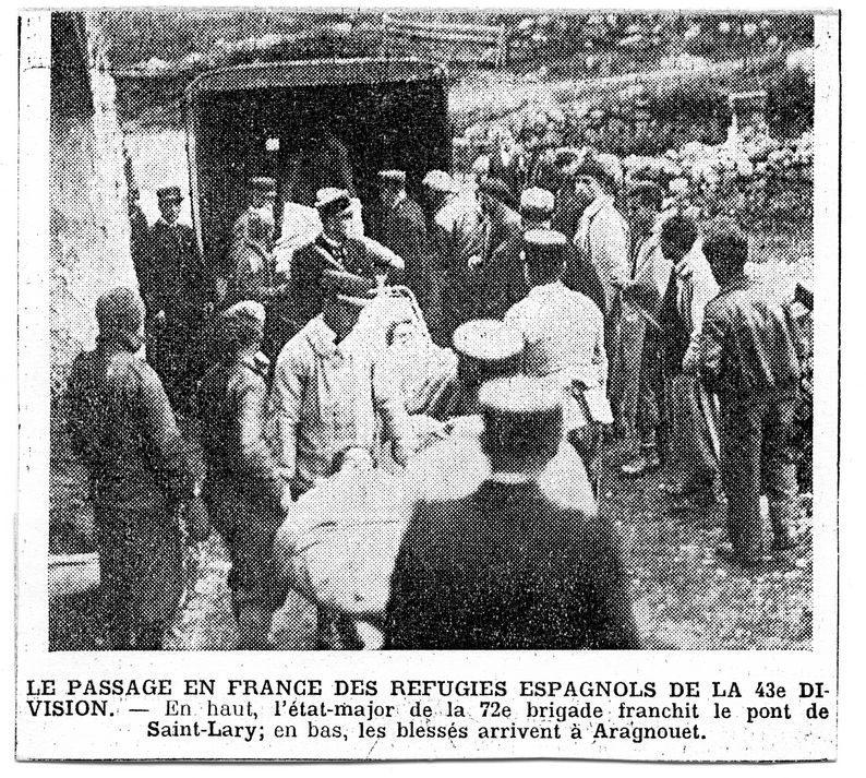 | Contenido: Breve artículo de prensa con imagen sobre el paso de la 43 DV. Hace referencia a 2 imágenes, pero solo se conserva en el artículo la segunda sobre la evacuación de los heridos una vez que han llegado a Aragnouet y son transportados hasta Arreau en camiones. Sin fecha, aunque posiblemente sería de los primeros días de junio. |