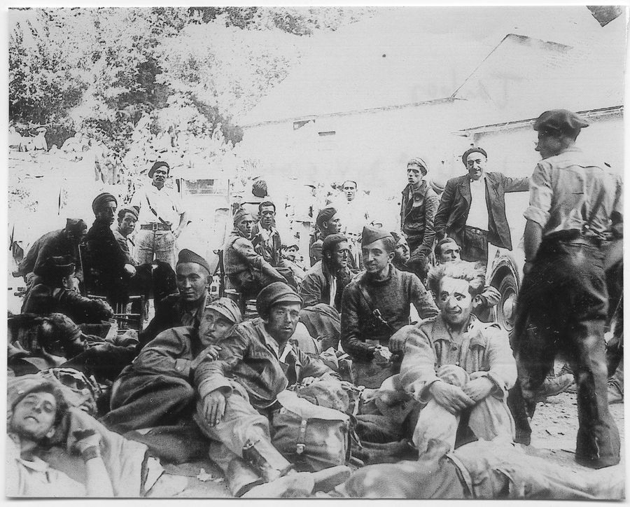 Contenido: Foto de prensa del periódico La Dépêche, aunque sin fecha, posiblemente del 15/16 de junio. Esta imagen aparece en el artículo nº MB-002-006-000-026 de esta misma sección, corresponde a un grupo de miembros de la 43 DV en el hotel de Fouga en Fabian.