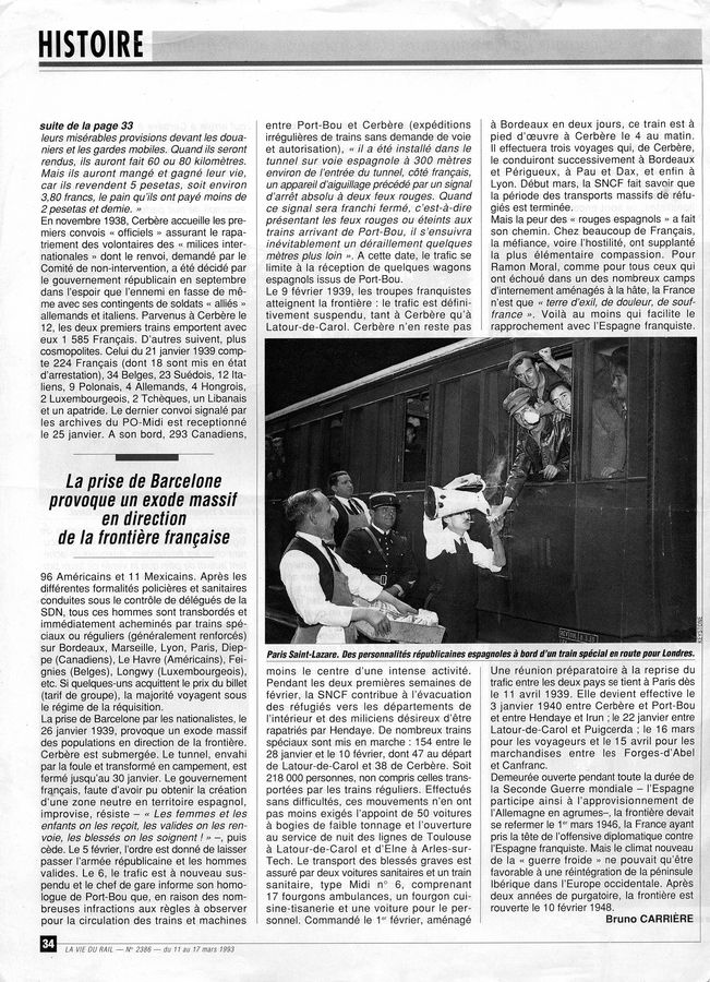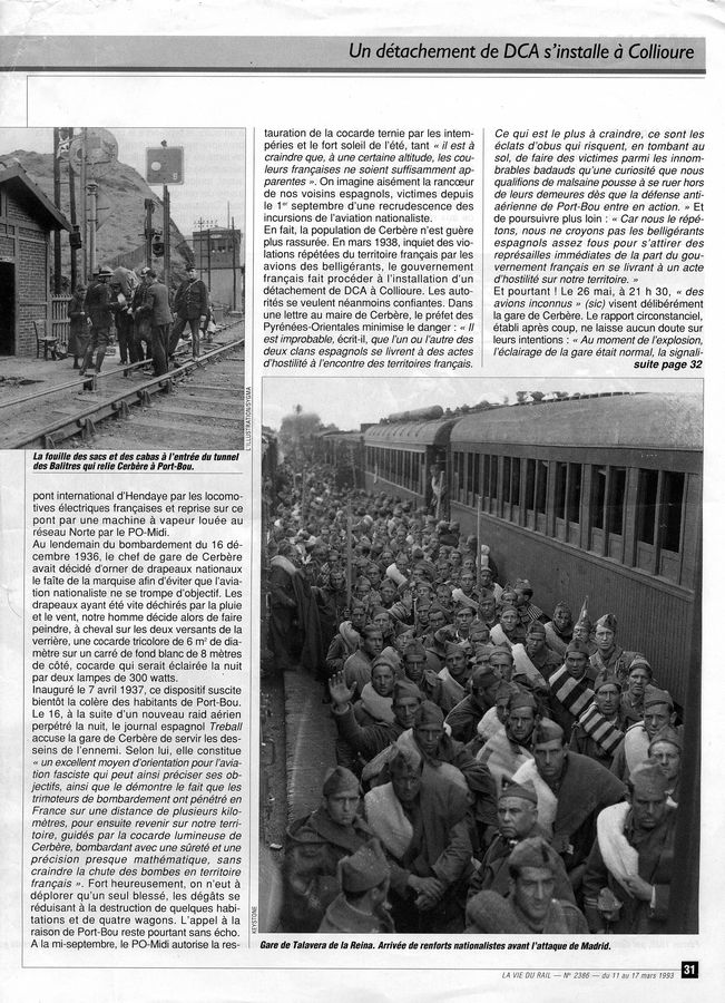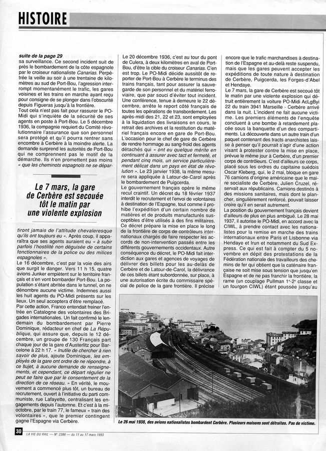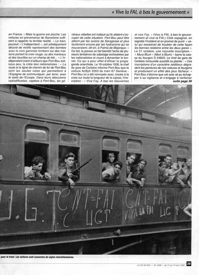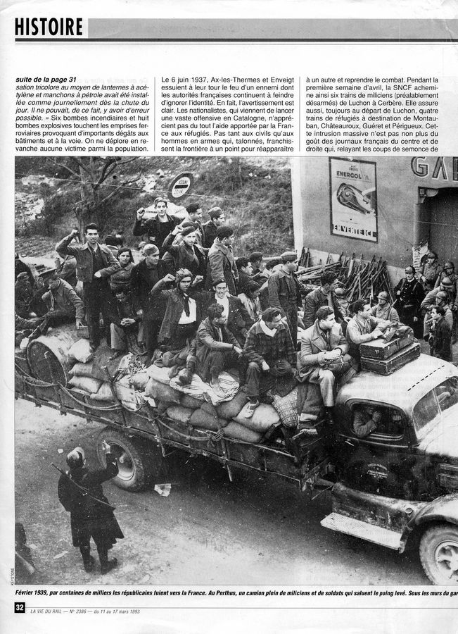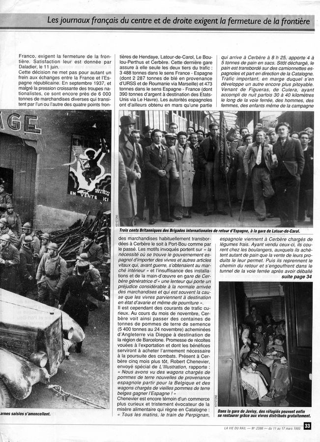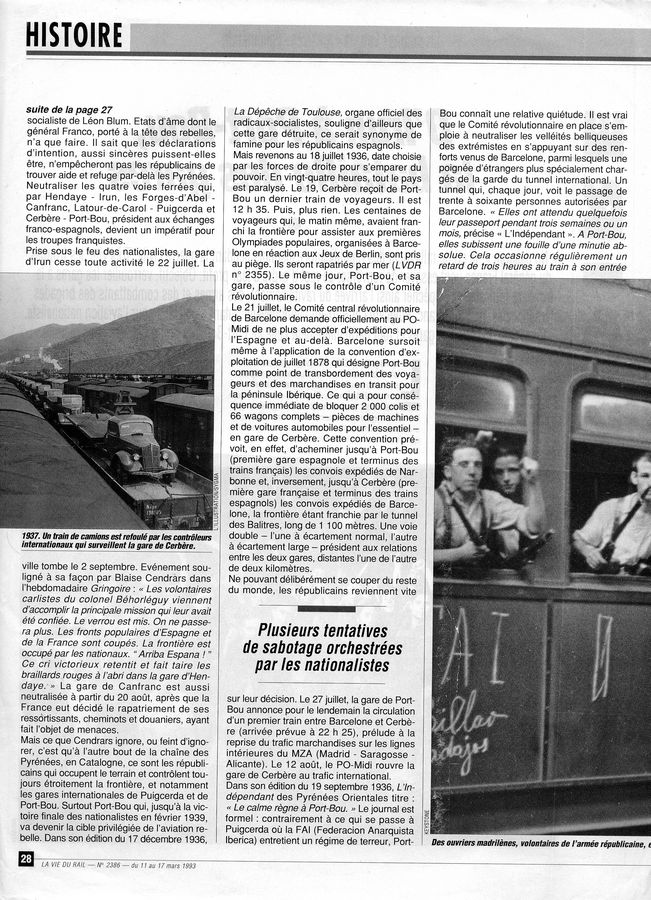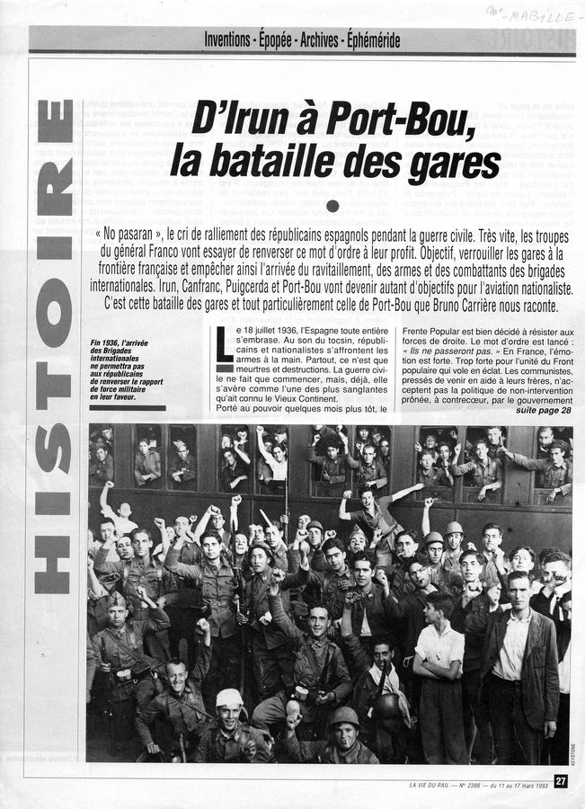 Contenido: Dos reportajes de la publicación francesa La Vie du Rail de los años 1992 y 1993 sobre la guerra civil en España, en ambos casos relacionados con el ferrocarril, los bombardeos de la aviación franquista, la relación con Francia, las brigadas internacionales, algunos eventos concretos y la retirada tras la toma de Barcelona.