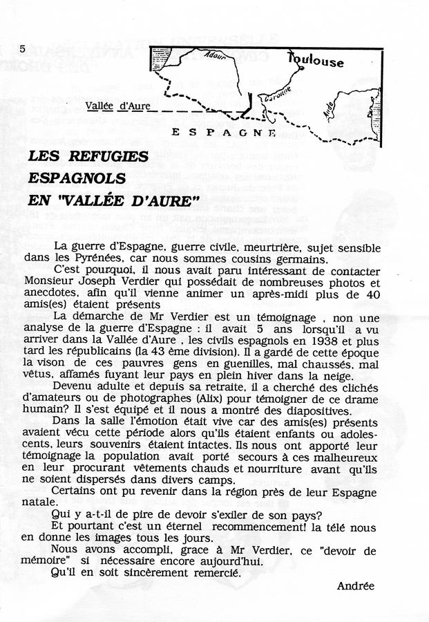 | Contenido: Reseña que conserva el Sr Verdier sobre él mismo como informante de los hechos de la bolsa de Bielsa en una publicación francesa sobre la guerra civil. |